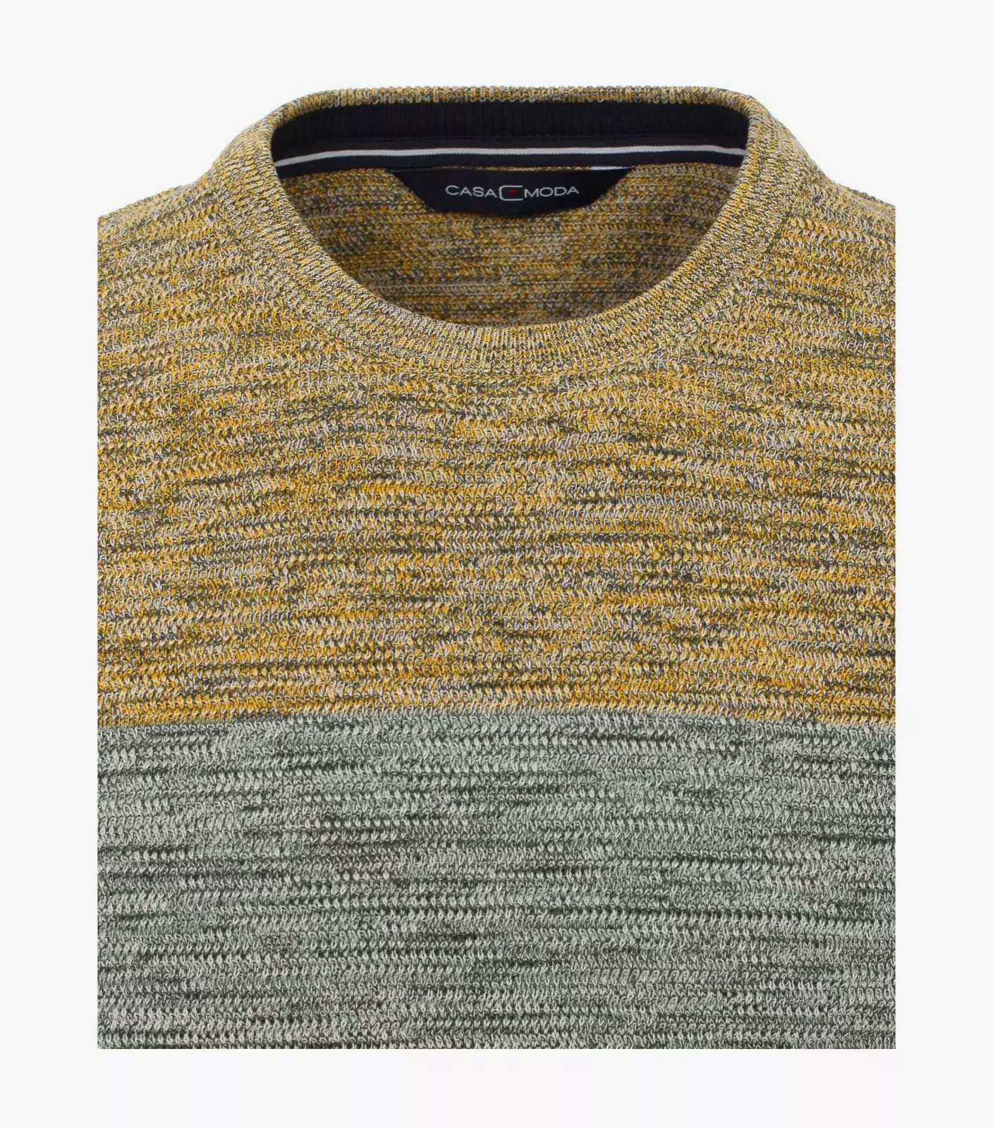 Casa Moda ronde hals trui okergeel, groen en blauw design