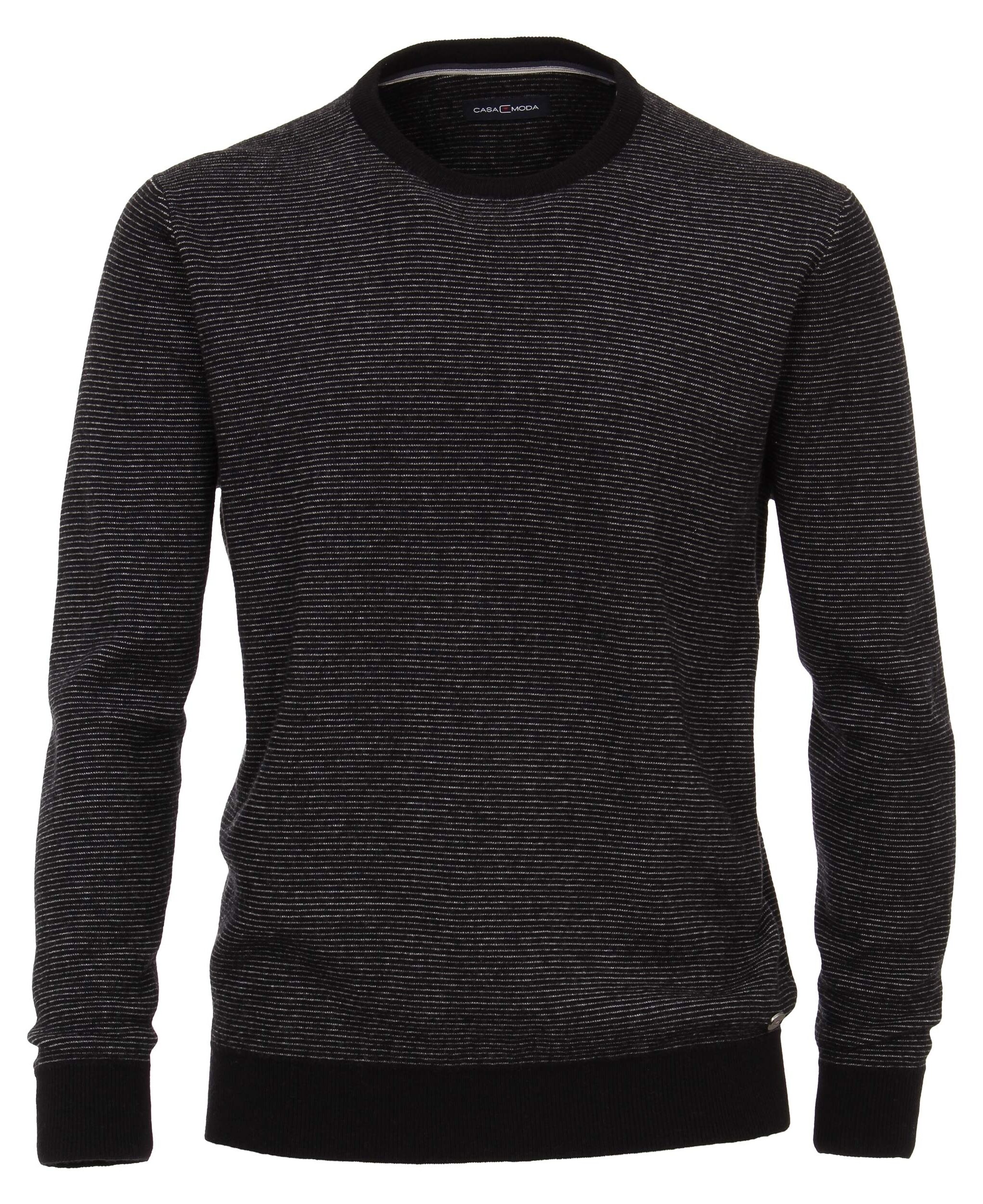 Casa Moda lange mouw ronde hals trui in een zwart en grijs streepje. De kwaliteit van deze ronde-hals trui is 55%wol en 45%katoen machine wasbaar.