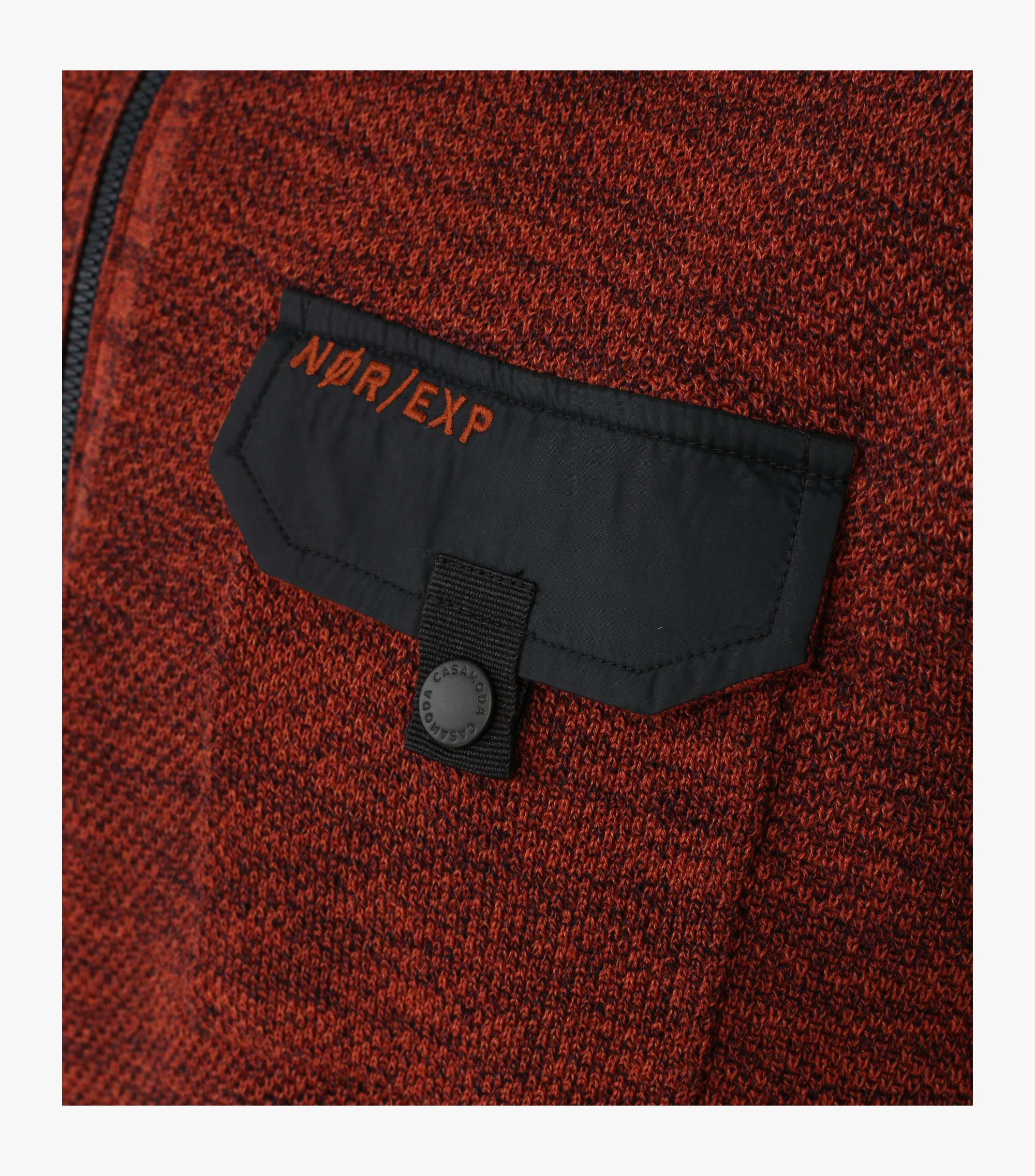Casa Moda gebreide troyer in rood met borstzak. De kwaliteit is 100% katoen.
