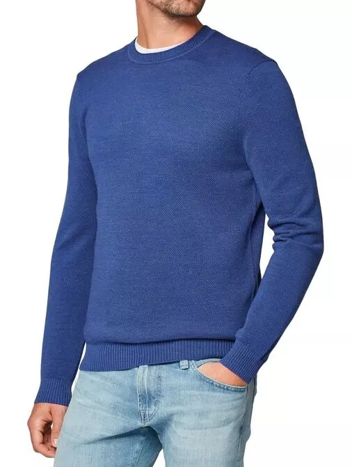 Maerz ronde hals trui in blauw. Deze tijdloze trui is fijn te dragen over een T-shirt of overhemd.