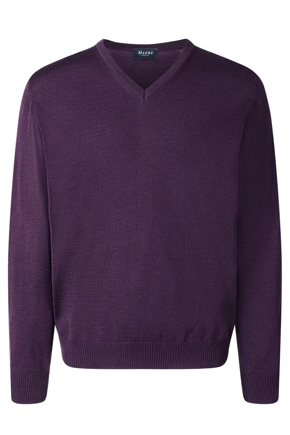 Maerz v-hals trui paars. Deze tijdloze trui is fijn te dragen over een T-shirt of overhemd. De kwaliteit is 100% wol.