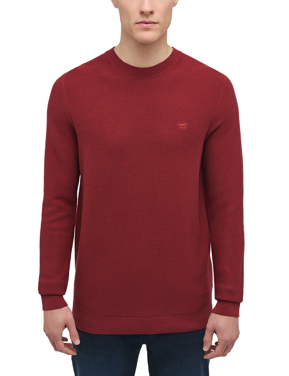 Mustang ronde hals trui rood in 100% katoenen kwaliteit.