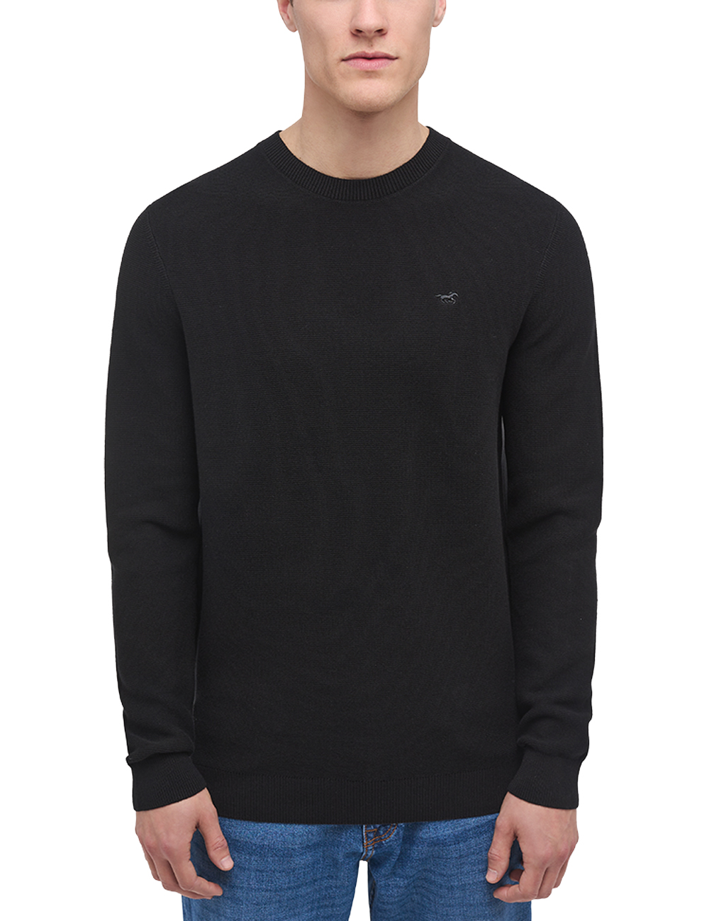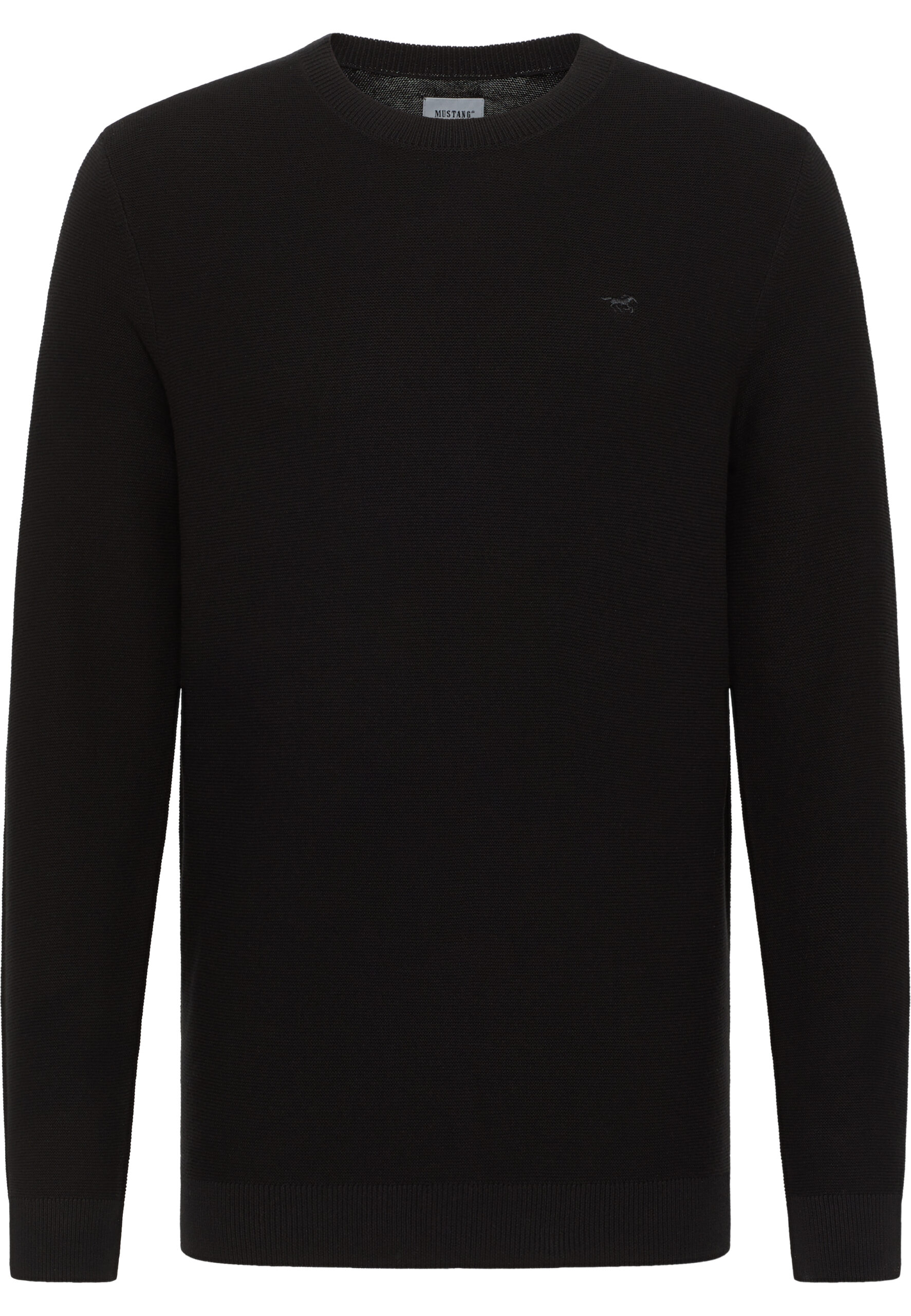 Mustang ronde hals trui zwart in 100% katoenen kwaliteit.