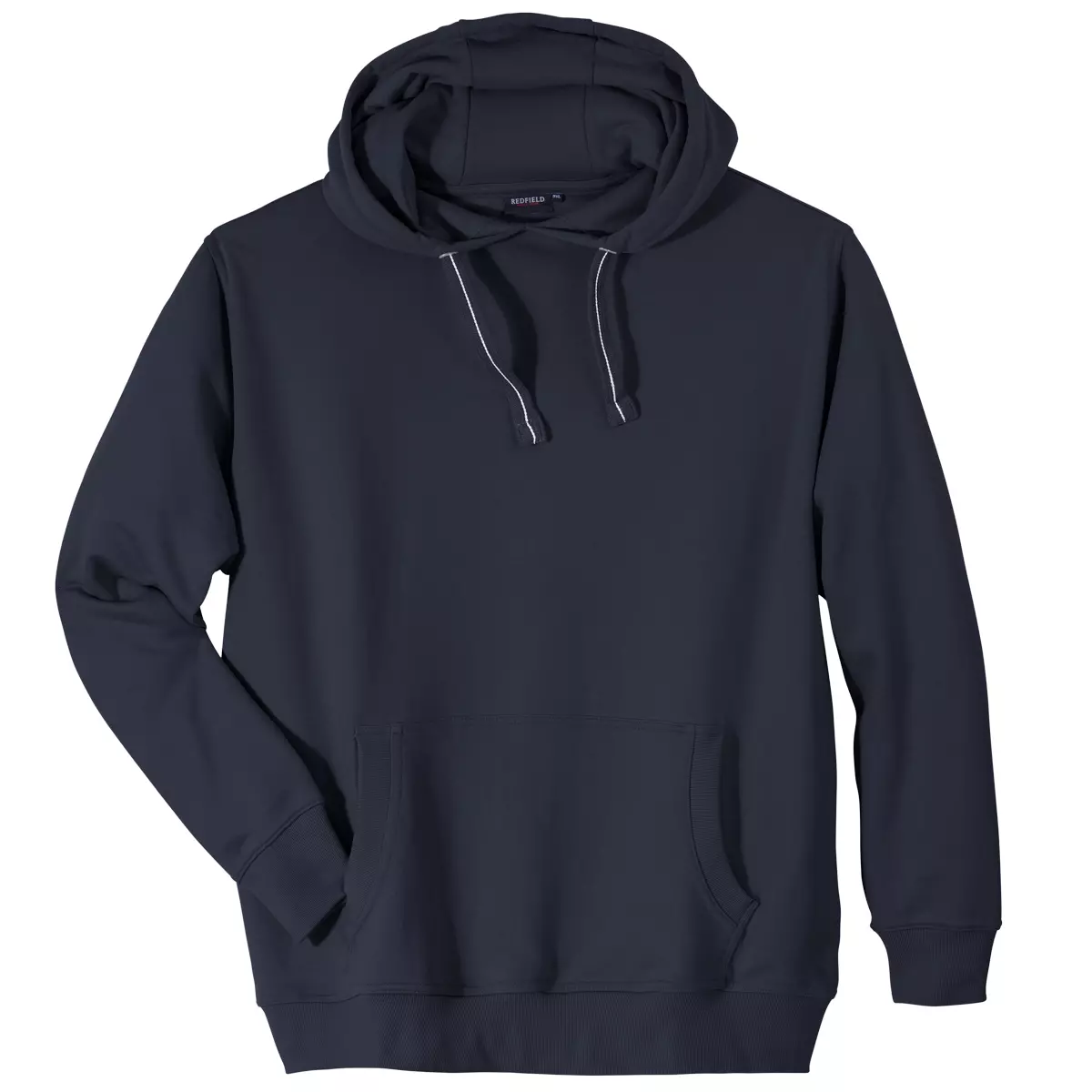 Redfield grote maat hoodie sweater donkerblauw. Redfield basic hoodie sweater lange mouw in donkerblauw met buidelzak op de voorkant van de sweater. De kwaliteit is 70% katoen en 30% polyester.