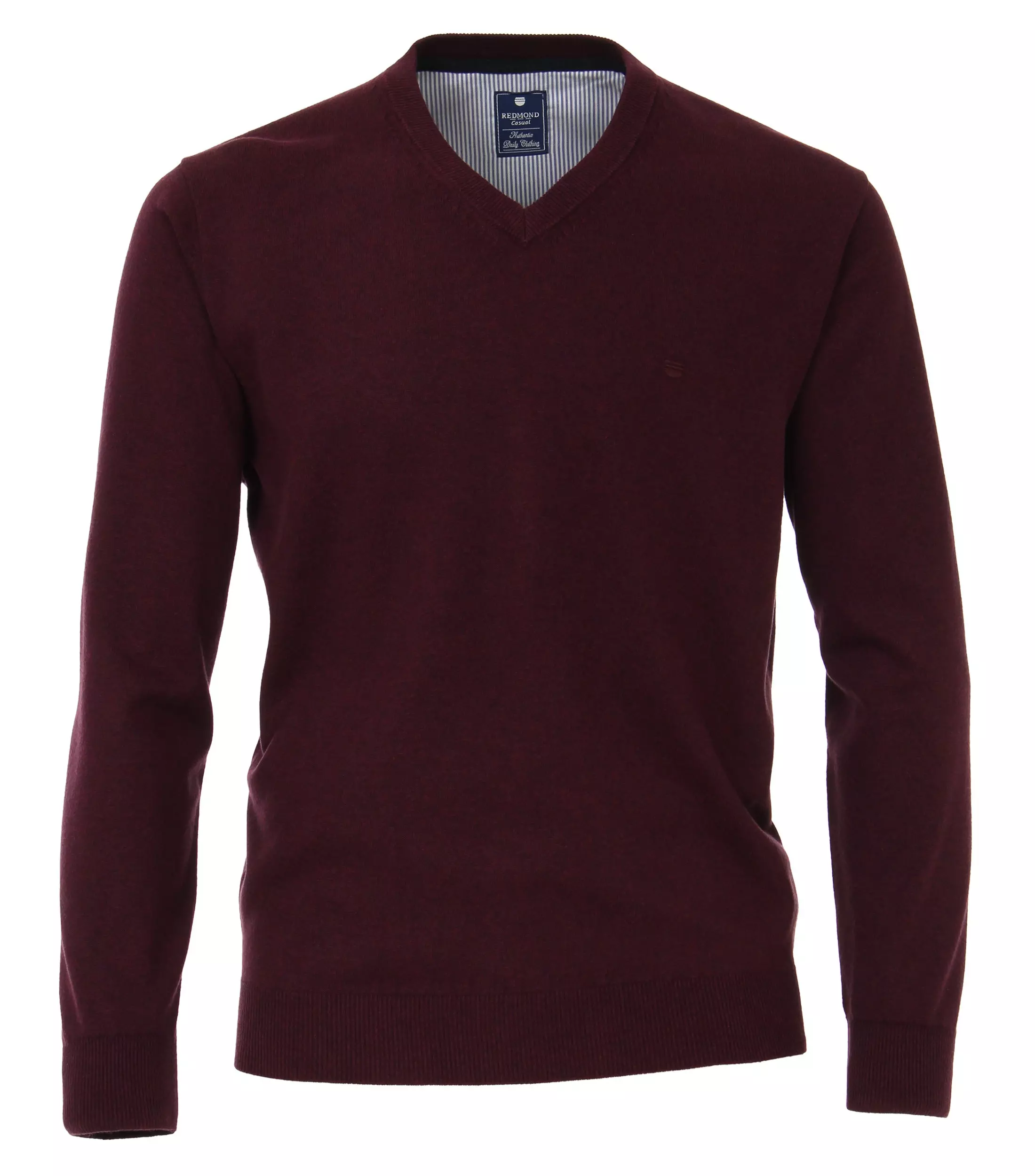 Redmond grote maat v-hals trui donkerrood. Redmond v-hals trui in 100% katoen.