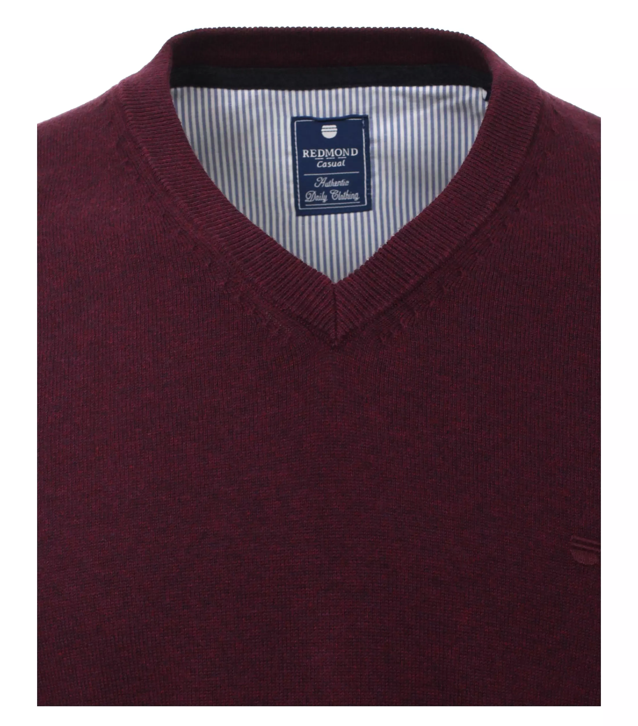Redmond lange mouw v-hals trui in donkerrood. Redmond v-hals trui in 100% katoen.