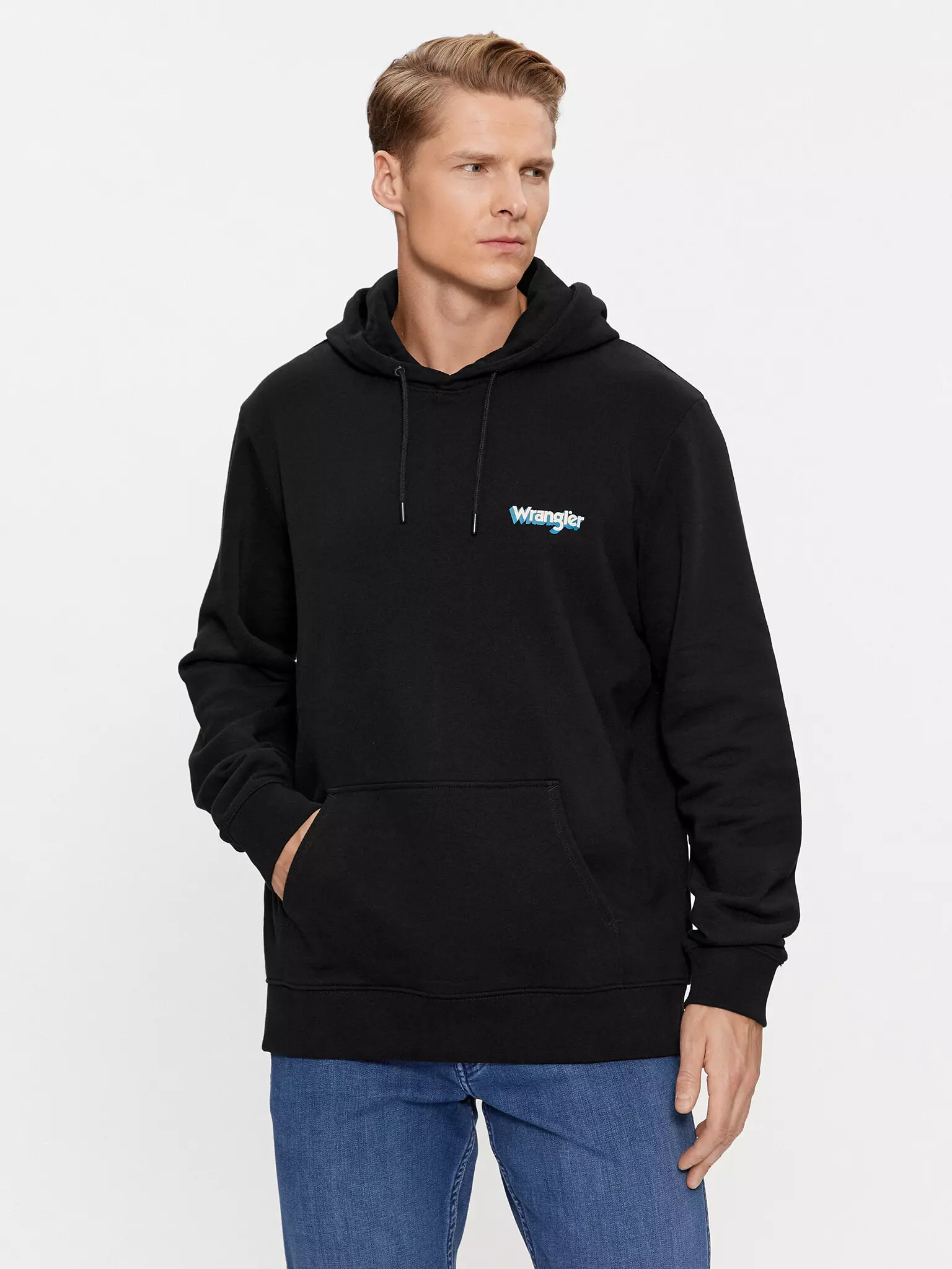 Wrangler hoodie sweater uni zwart met Wrangler logo.