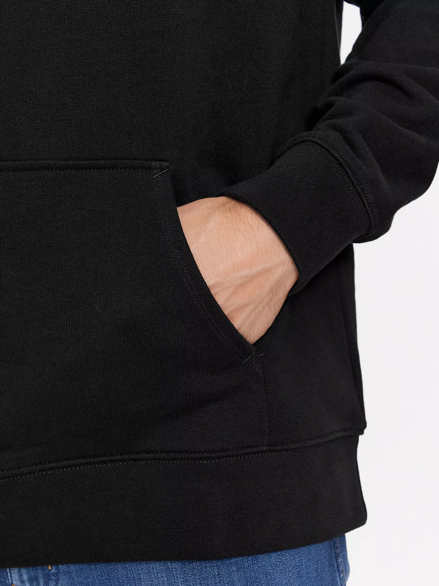 Hoodie sweater in uni zwart met buidelzak.