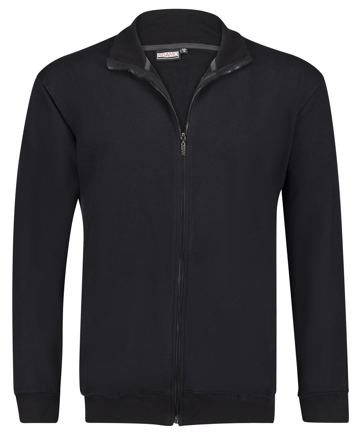 Adamo sweatjack zwart met aan de zijkant 2 zakken met ritssluiting. De kwaliteit is 100%katoen.