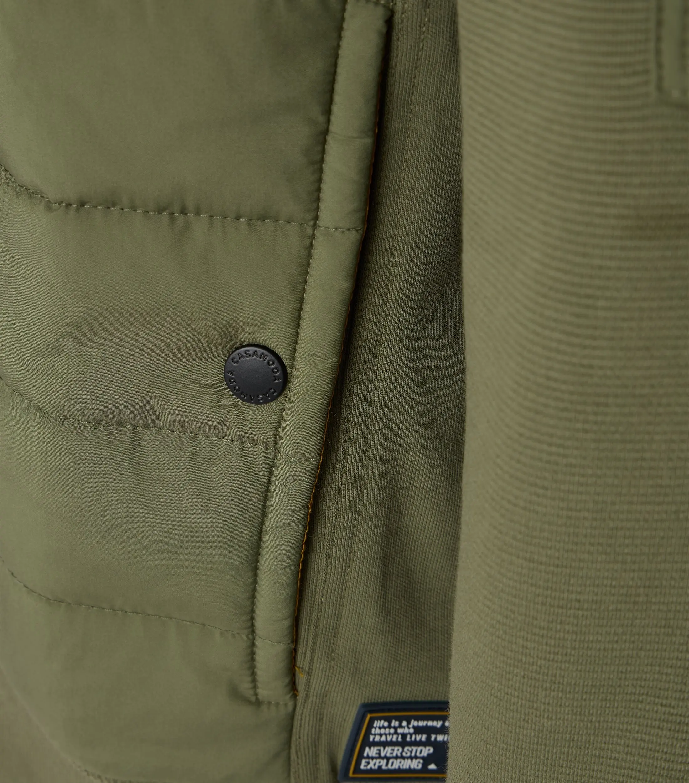 Casa Moda jack/vest groen. Sportief jack/vest in groen met 2 zakken aan de zijkant en 1 op de arm. De kwaliteit is 95% katoen en 5% polyester.