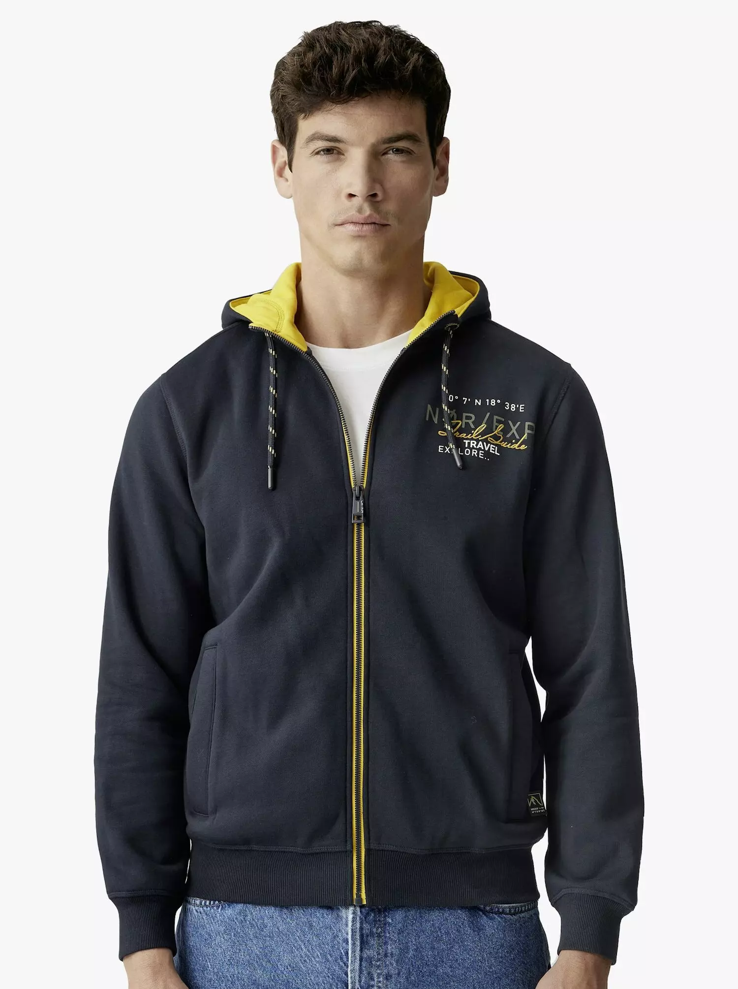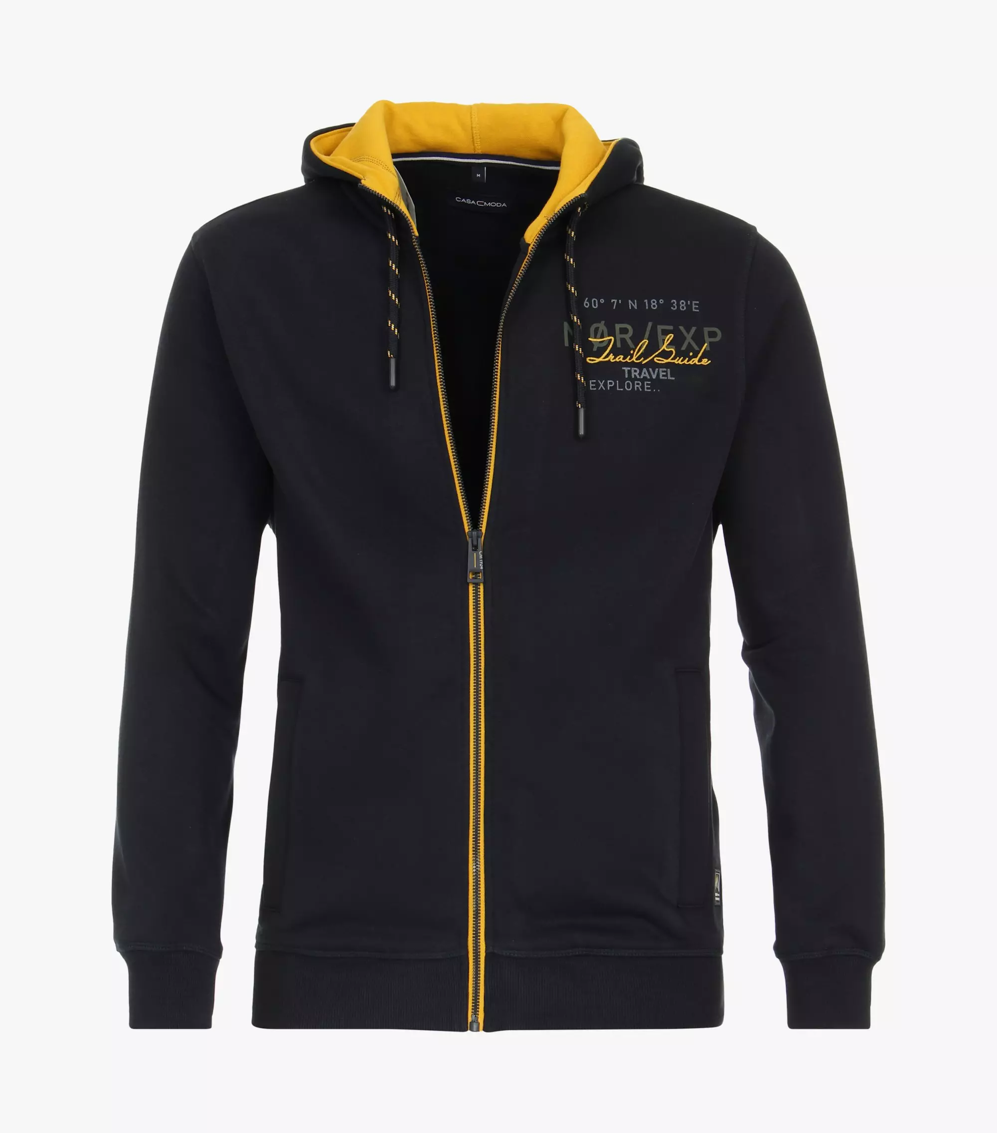 Casa Moda hoodie sweatvest donkerblauw met 2 zijzakken.