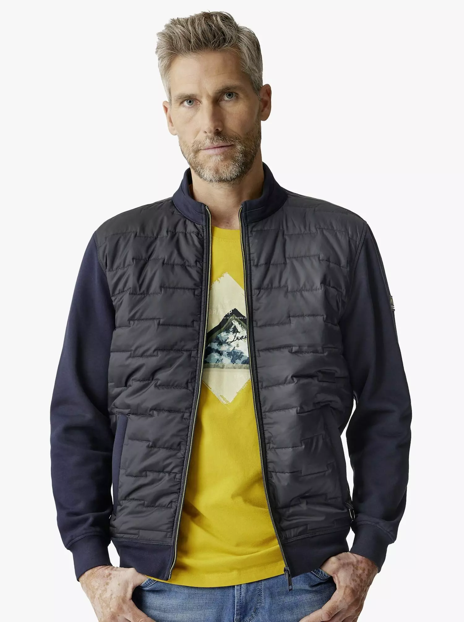 Casa Moda jack/vest donkerblauw. Sportief jack/vest in donkerblauw met 2 zijzakken. De kwaliteit is 70% katoen en 30% polyester.