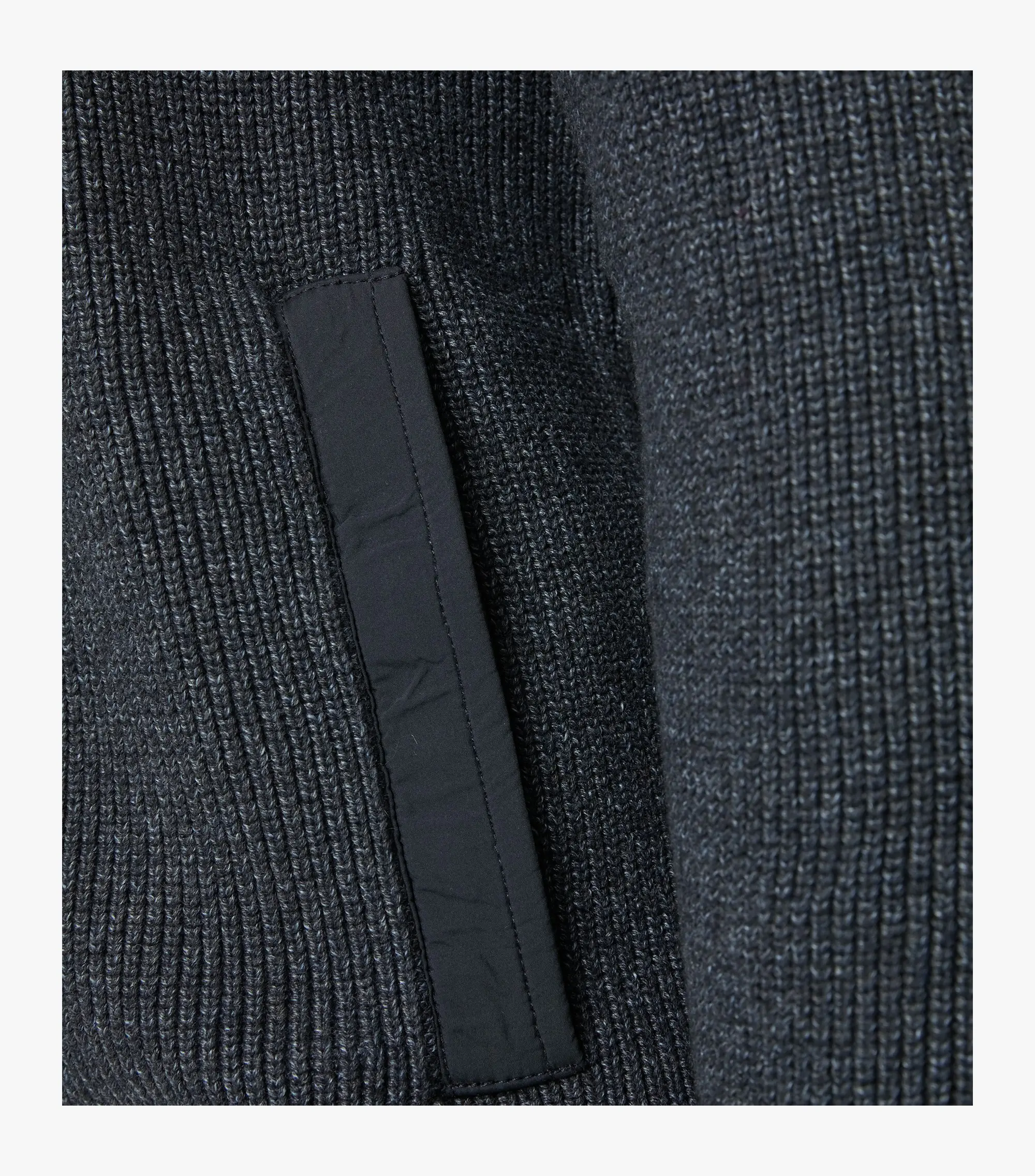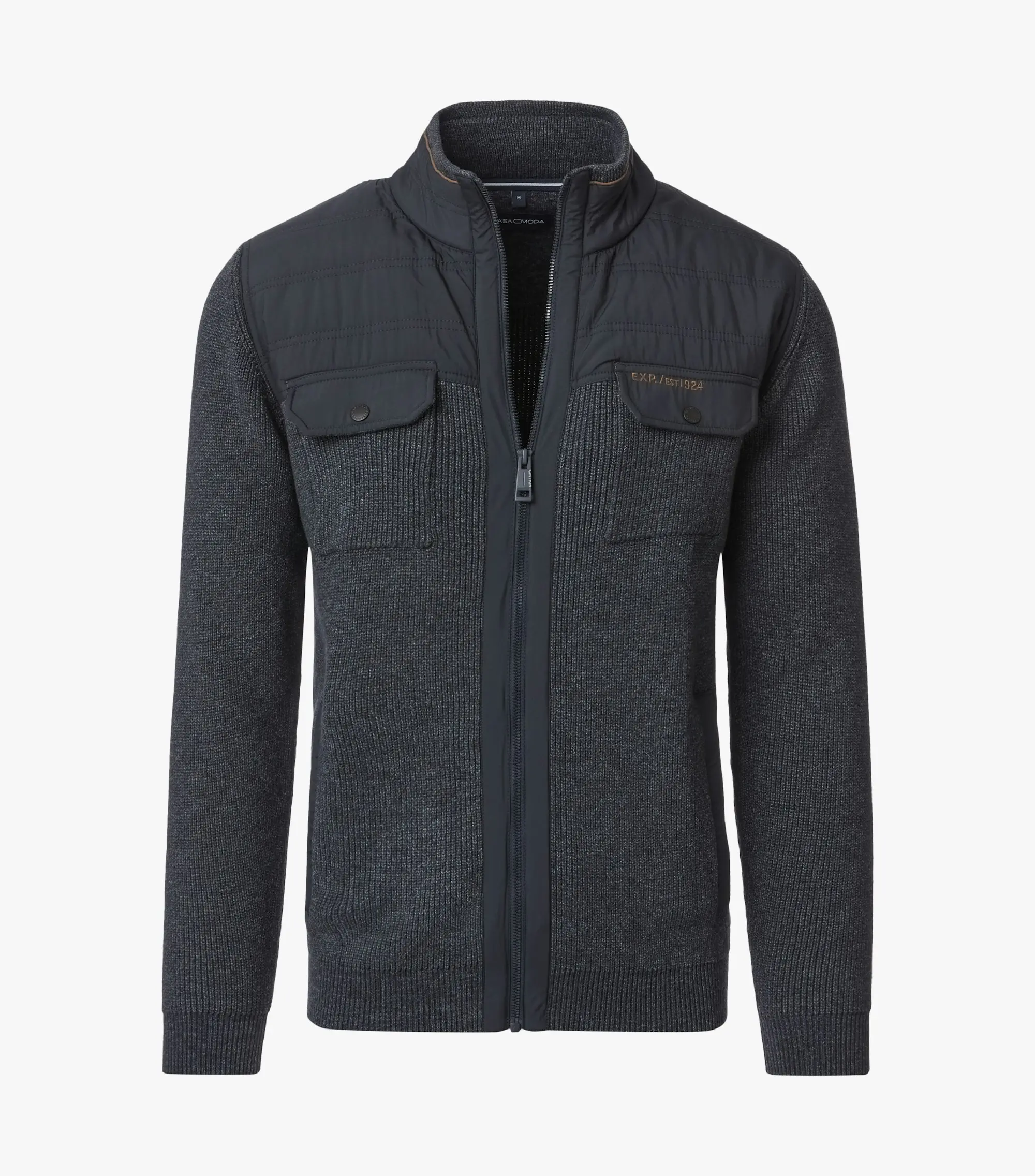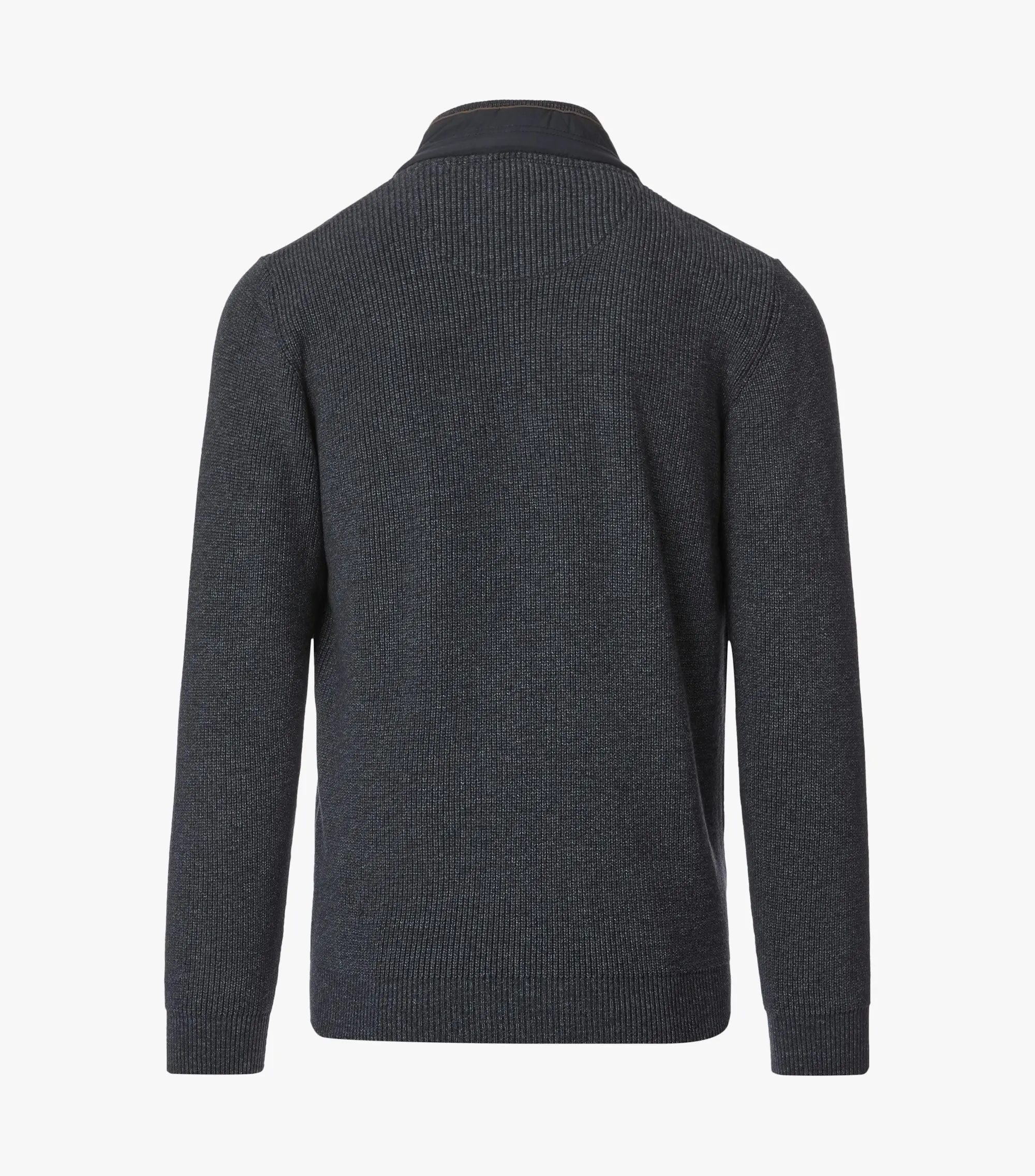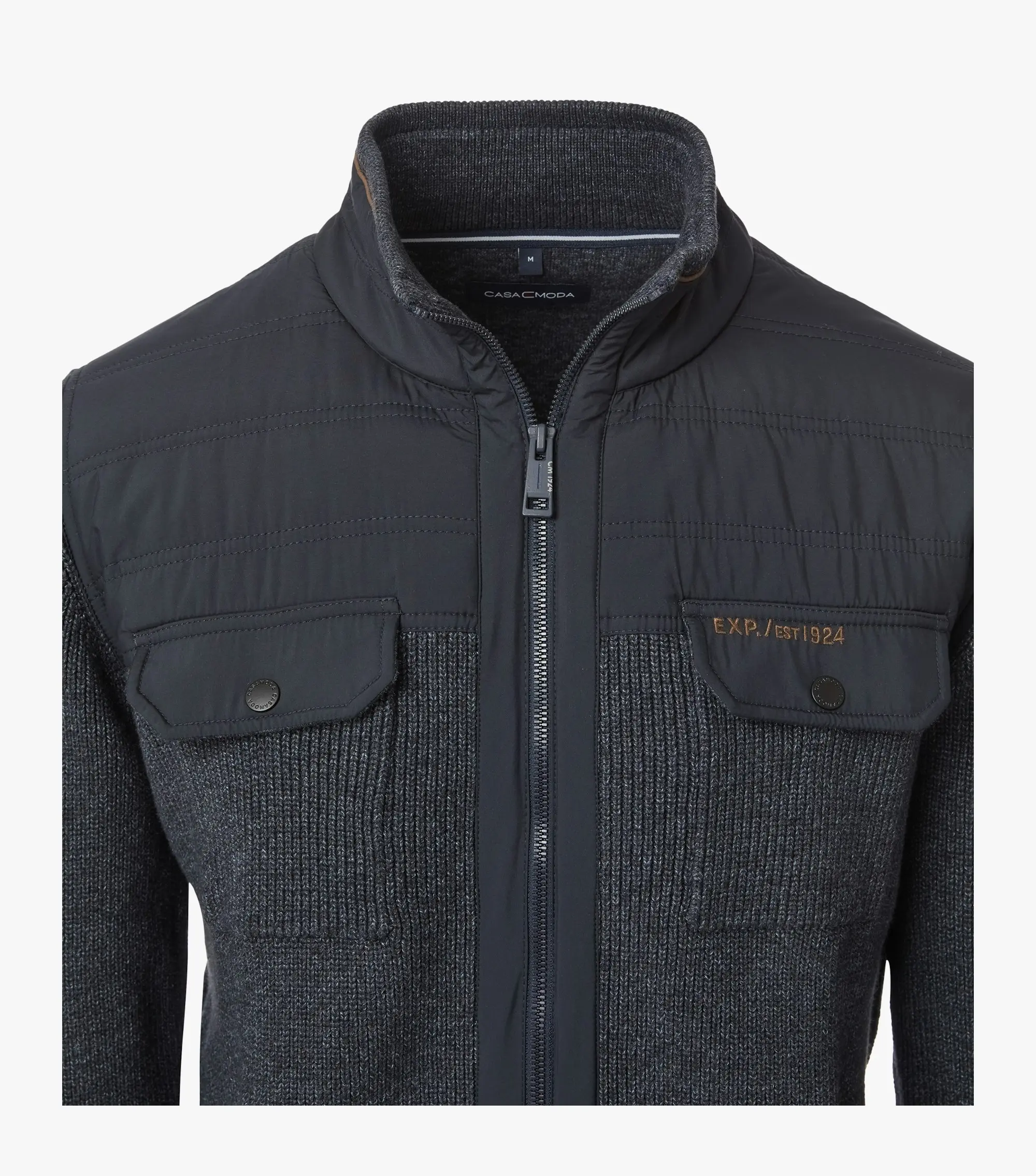 Casa Moda zware kwaliteit gebreid vest met zijzakken in donkerblauw met blauw. Vest met 2 zijzakken en 2 zakken op de borst. De kwaliteit is 62% katoen, 28% Polyester, 10% Polyamide.