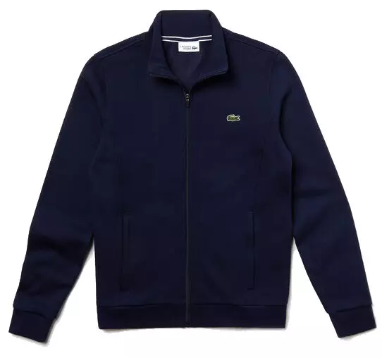Lacoste sportvest in donkerblauw, 2 zijzakken met ritssluiting. Ruim vallend niet getailleerd. De kwaliteit van dit vest is 84% katoen en 16% polyester