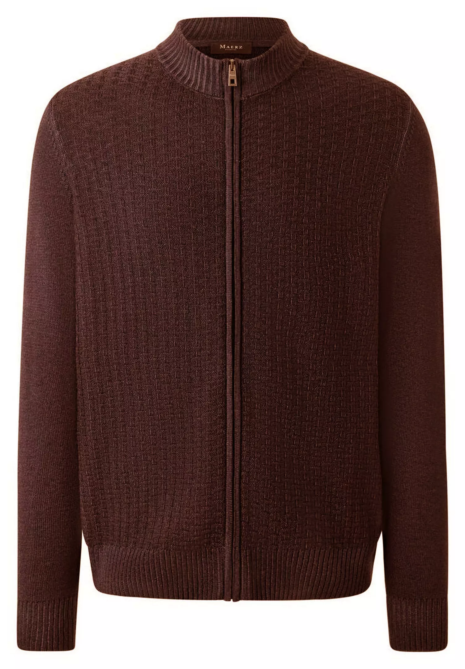 Maerz vest bordeauxrood met ingeweven structuur. Voor wanneer alleen een overhemd net iets te fris is, is dit vest een uitkomst. Vest met college kraag in bordeauxrood met ritssluiting. De kwaliteit is 100% wol.
