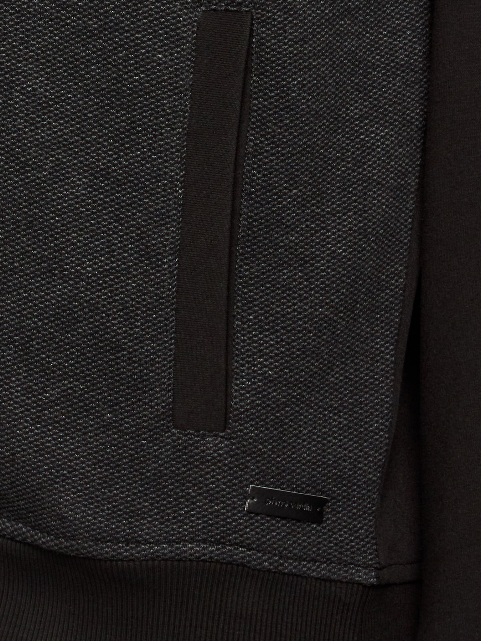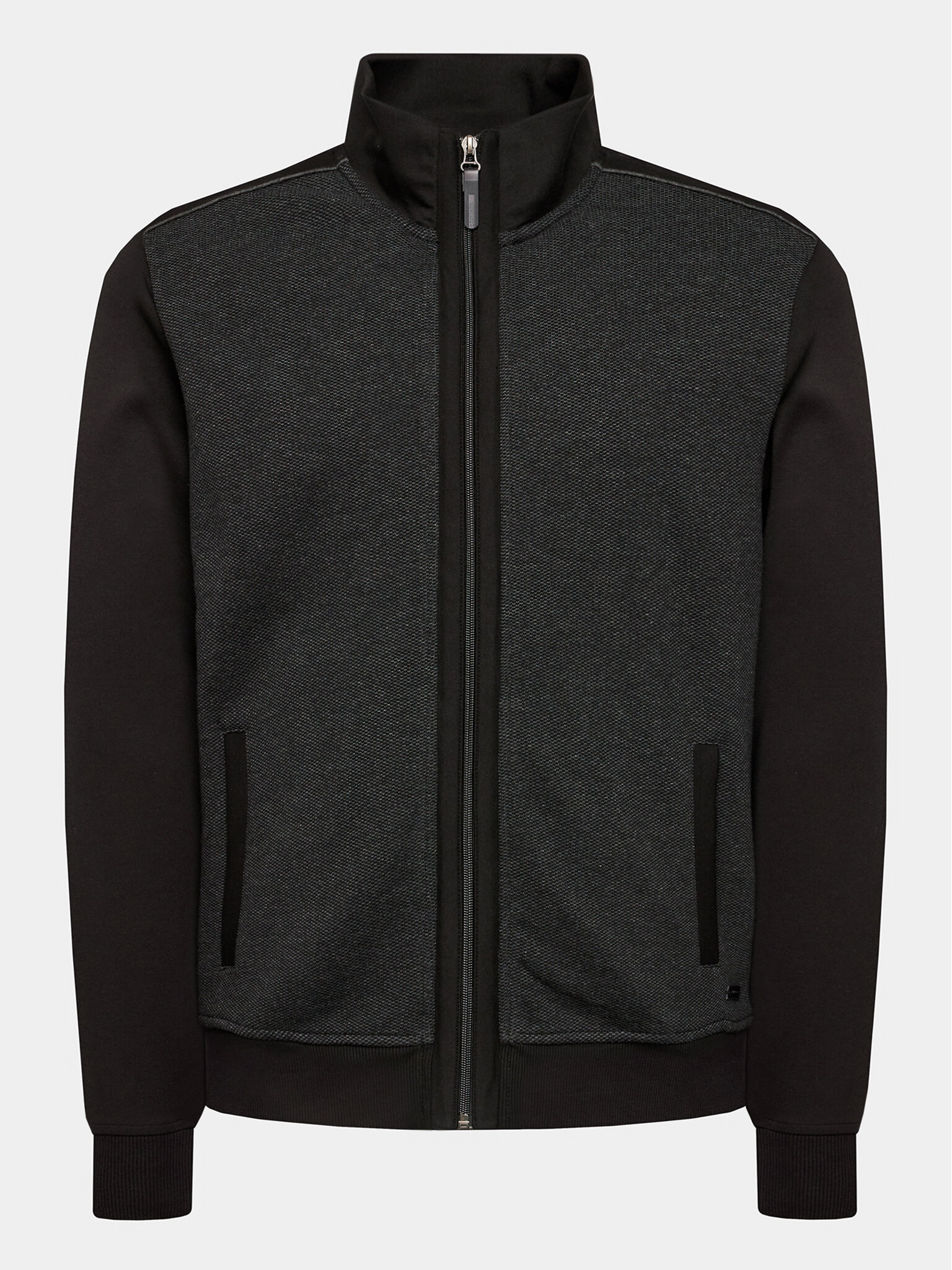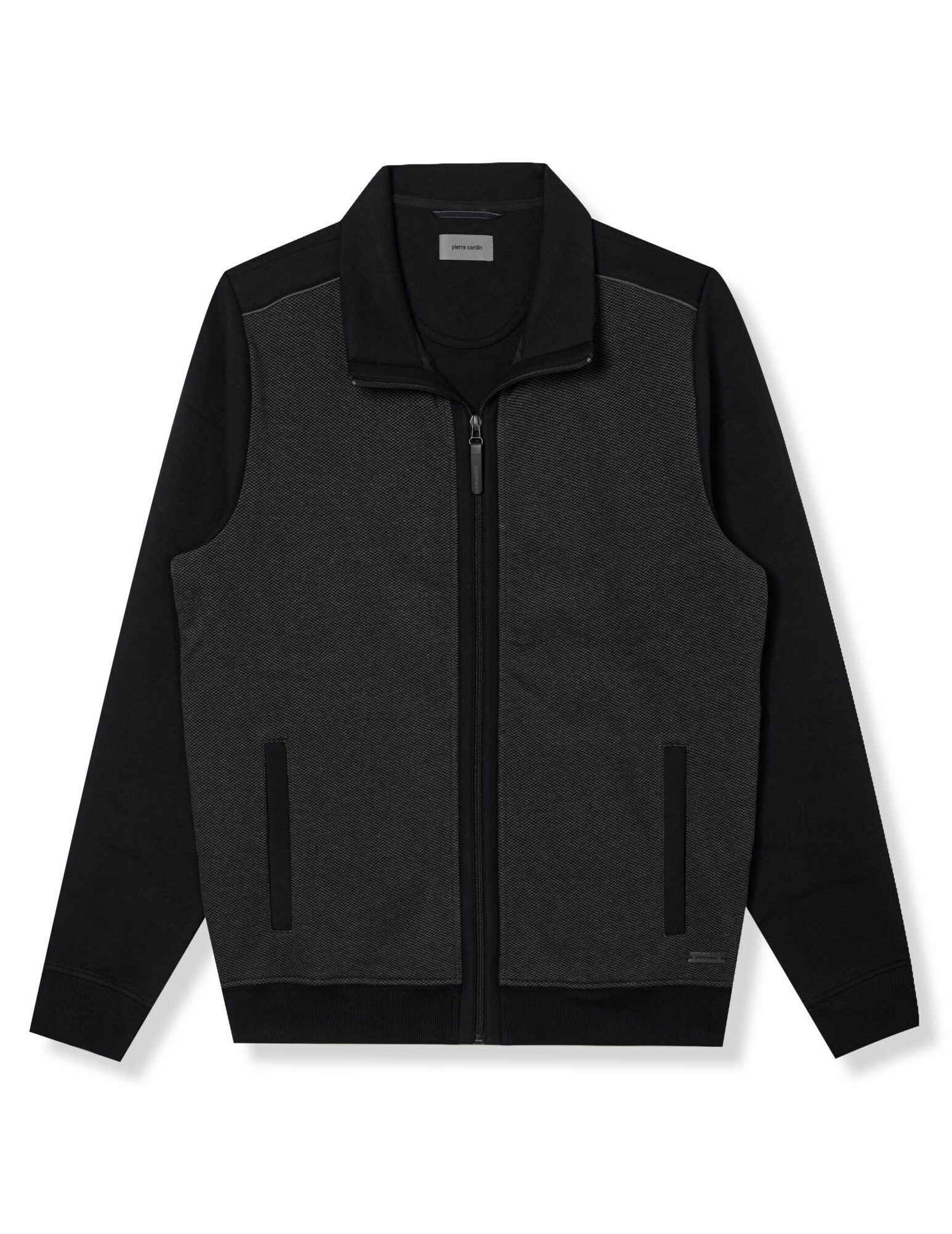 Pierre Cardin casual vest in donkergrijs met zwarte mouwen en rugpand 2 zijzakken en 2 diepe binnenzakken. De kwaliteit is 72% katoen en 28% polyester.