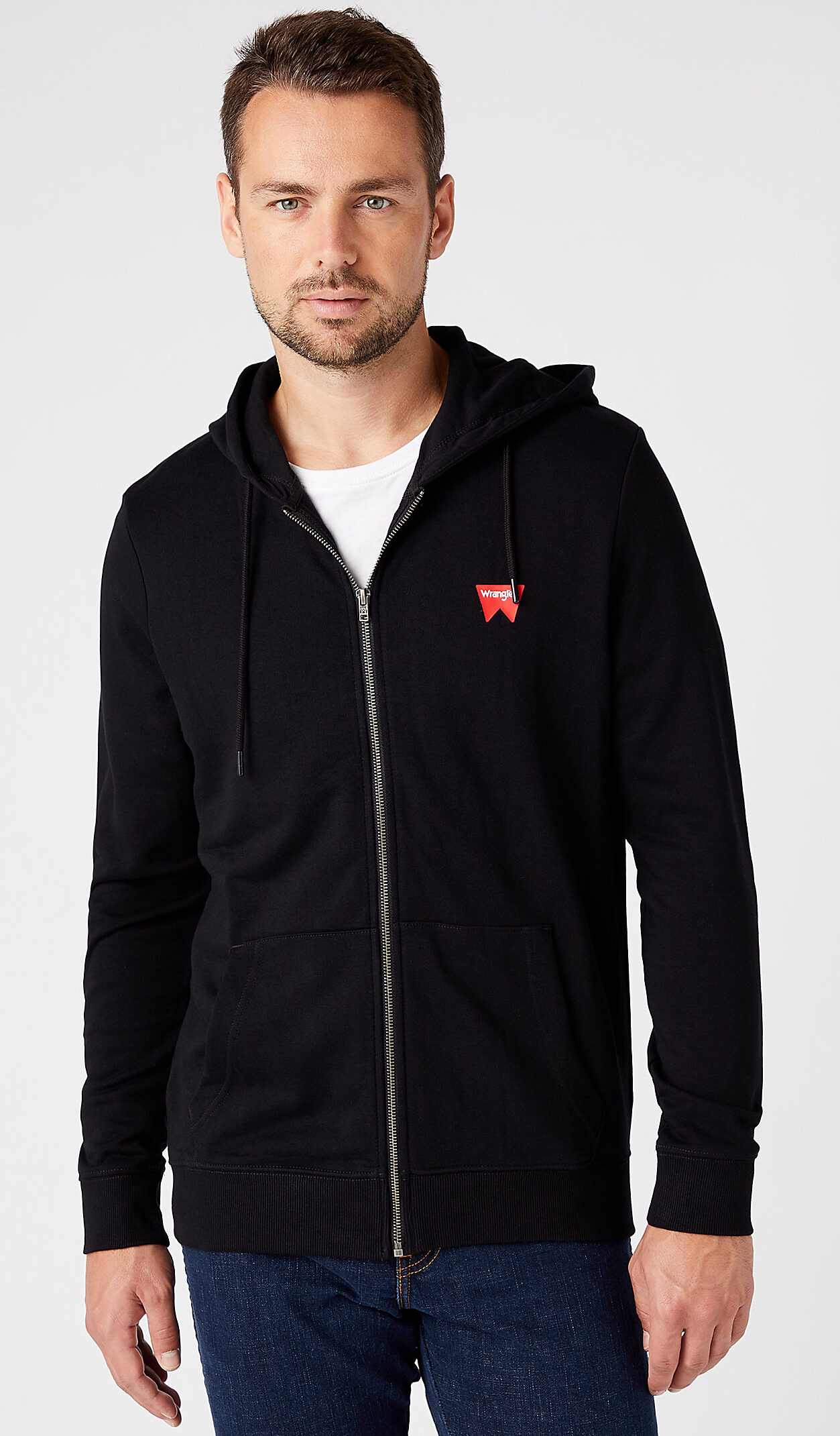 Wrangler hoodie sweat vest met buidelzak in zwart. De kwaliteit is 100% katoen.
