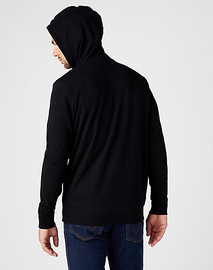 Wrangler hoodie met buidelzak en capuchon in zwart. De kwaliteit is 100%katoen.