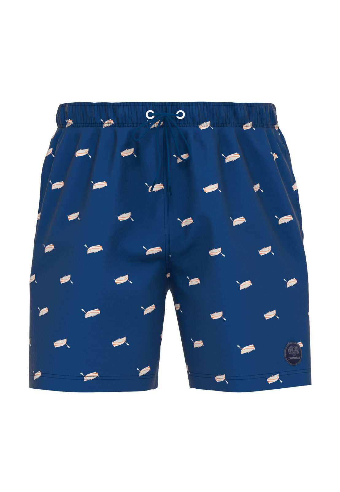 Ceceba zwemshort met gazen binnenbroek in blauw met een roeibootjes design. Ceceba zwemshort met 2 zijzakken en een achterzak met in de elastische band een koord om de zwemshort strakker aan te trekken. De kwaliteit is een snel drogende stof in 100%polyester.
