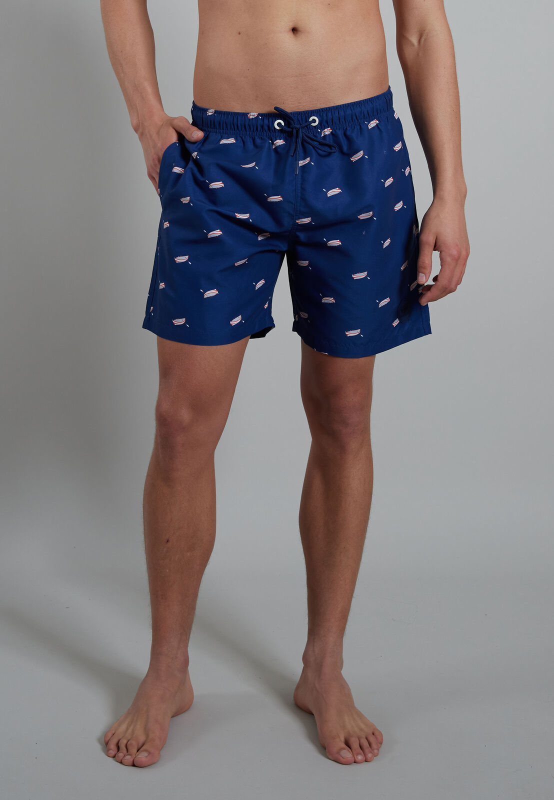 Deze zwemshorts zijn uitgevoerd in blauw met roeibootjes design, waardoor je opvalt aan het zwembad of op het strand.
