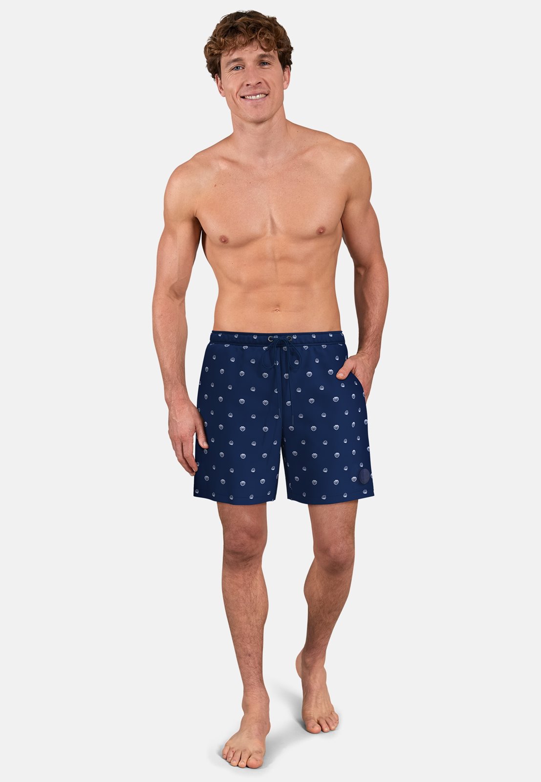 Deze zwemshorts zijn uitgevoerd in blauw met schelpen design, waardoor je opvalt aan het zwembad of op het strand.