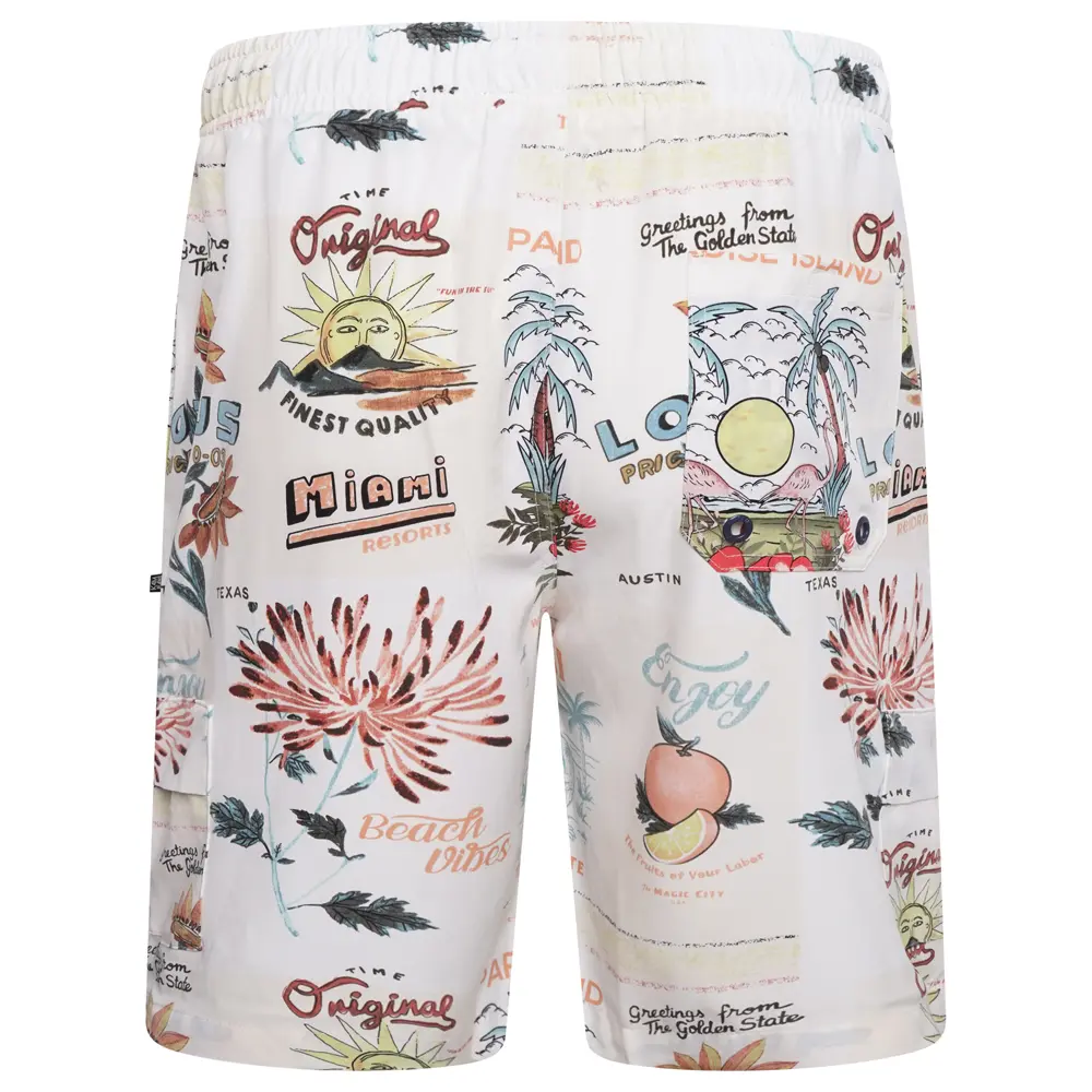 Kam zwemshort ecru met tropisch design. Kam stretch zwemshort met gazen binnenbroek heeft een achterzak, twee zijzakken en twee zijzakken met rits. In de band van de zwemshort zit een tunnel koord om de short strakker aan te trekken. Zwemshort in sneldrogende stof 98% polyester en 2% spandex.