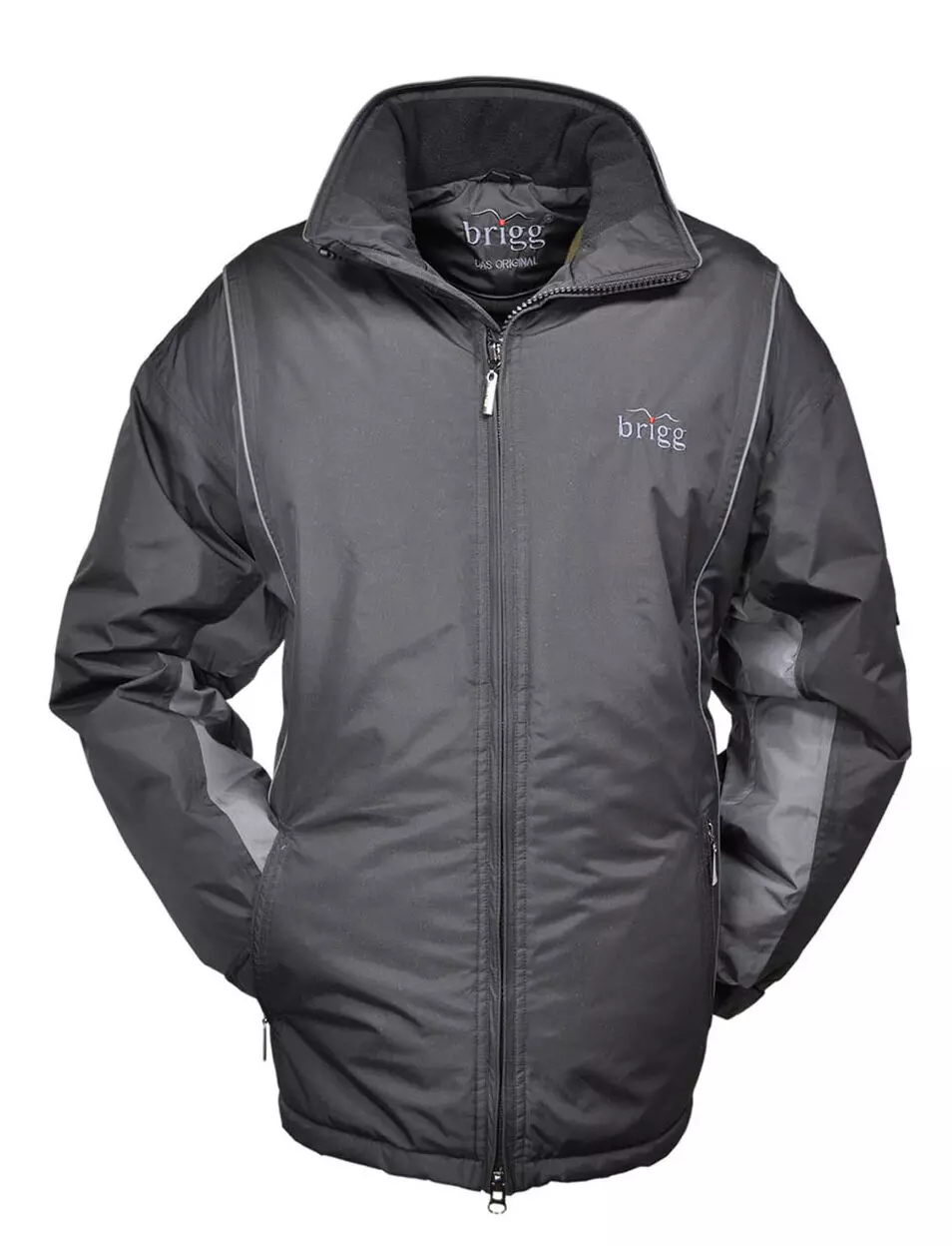 Brigg winterjas met extra lange mouwen in zwart en grijs met capuchon. Dit jack is winddicht, waterdicht en ademend. Jack heeft een teddy voerring aan de binnenkant, 2 zijzakken met rits aan de buitenkant en 2 zakken met rits aan de binnenkant met ook nog een telefoon zakje. In de kraag een capuchon.