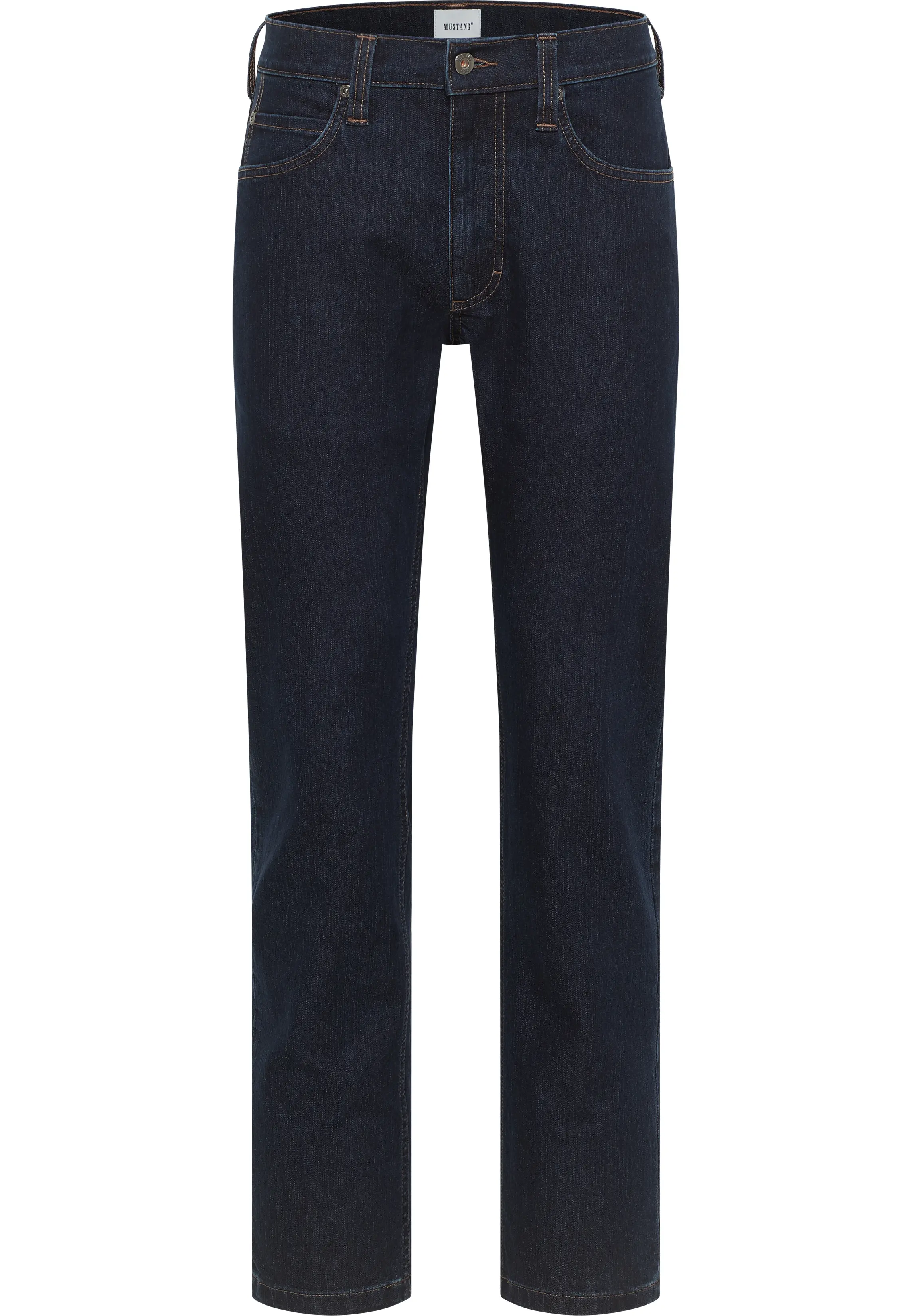 Mustang lengte maat jeans darkblue. Mustang 5 pocket jeans model Tramper straight leg, medium rise. De kwaliteit is 69% katoen, 29% Polyester, 2% Elasthan.