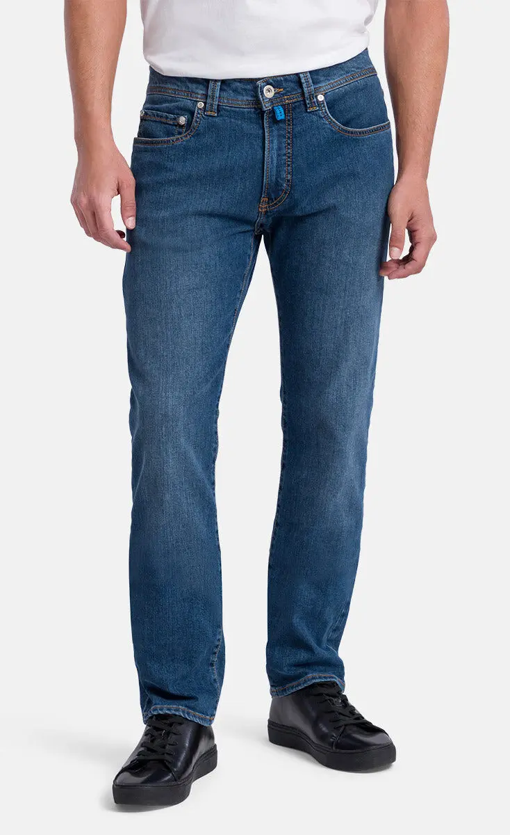 Pierre Cardin future flex jeans mid stonewashed light used. 5 pocket lengte maat future flex stretch jeans model Lyon tapered leg.