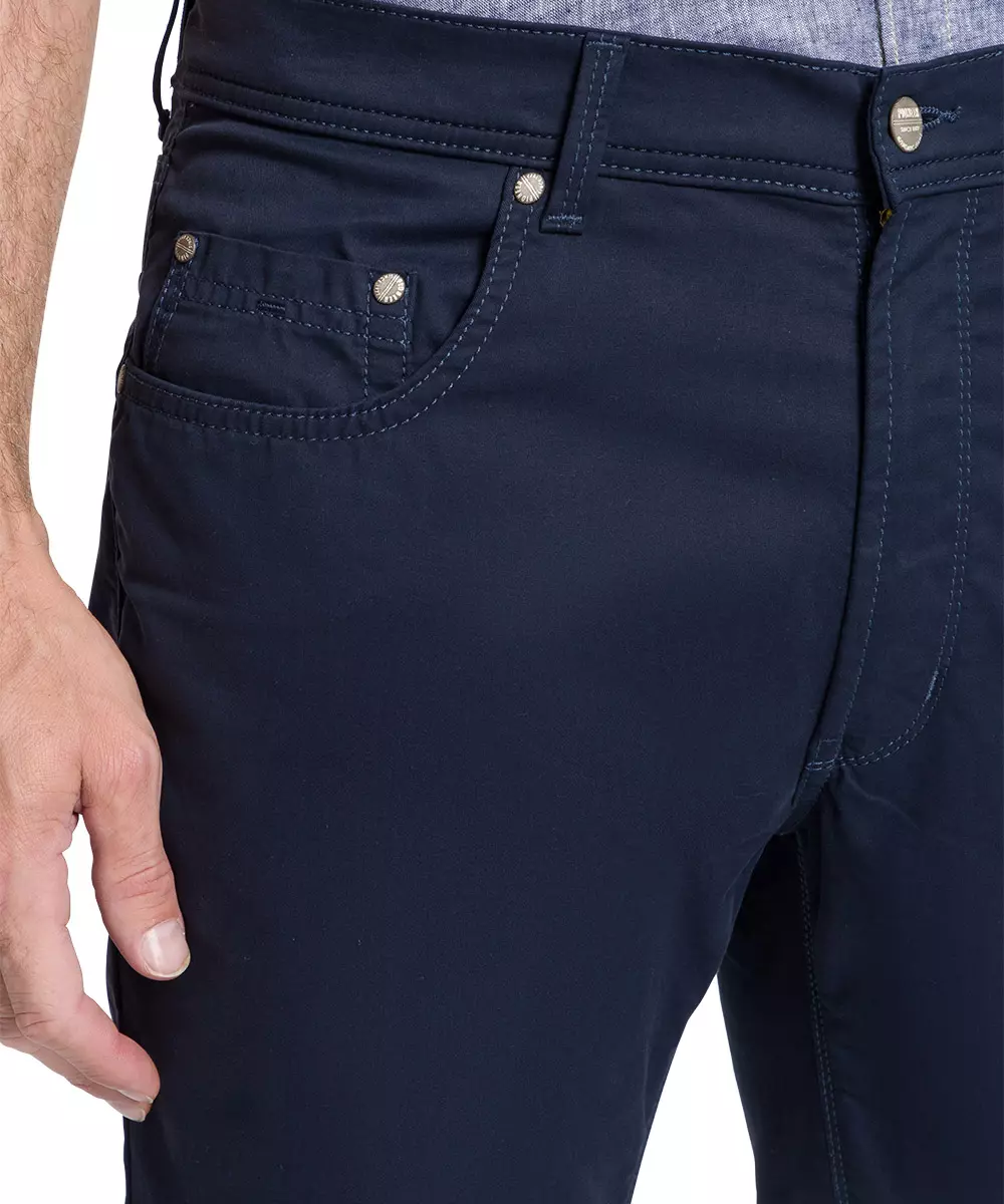 Pioneer lengte maat mega flex zomer stretch jeans blauw non denim model Rando. Pioneer 5 pocket zomer stretch jeans in blauw.