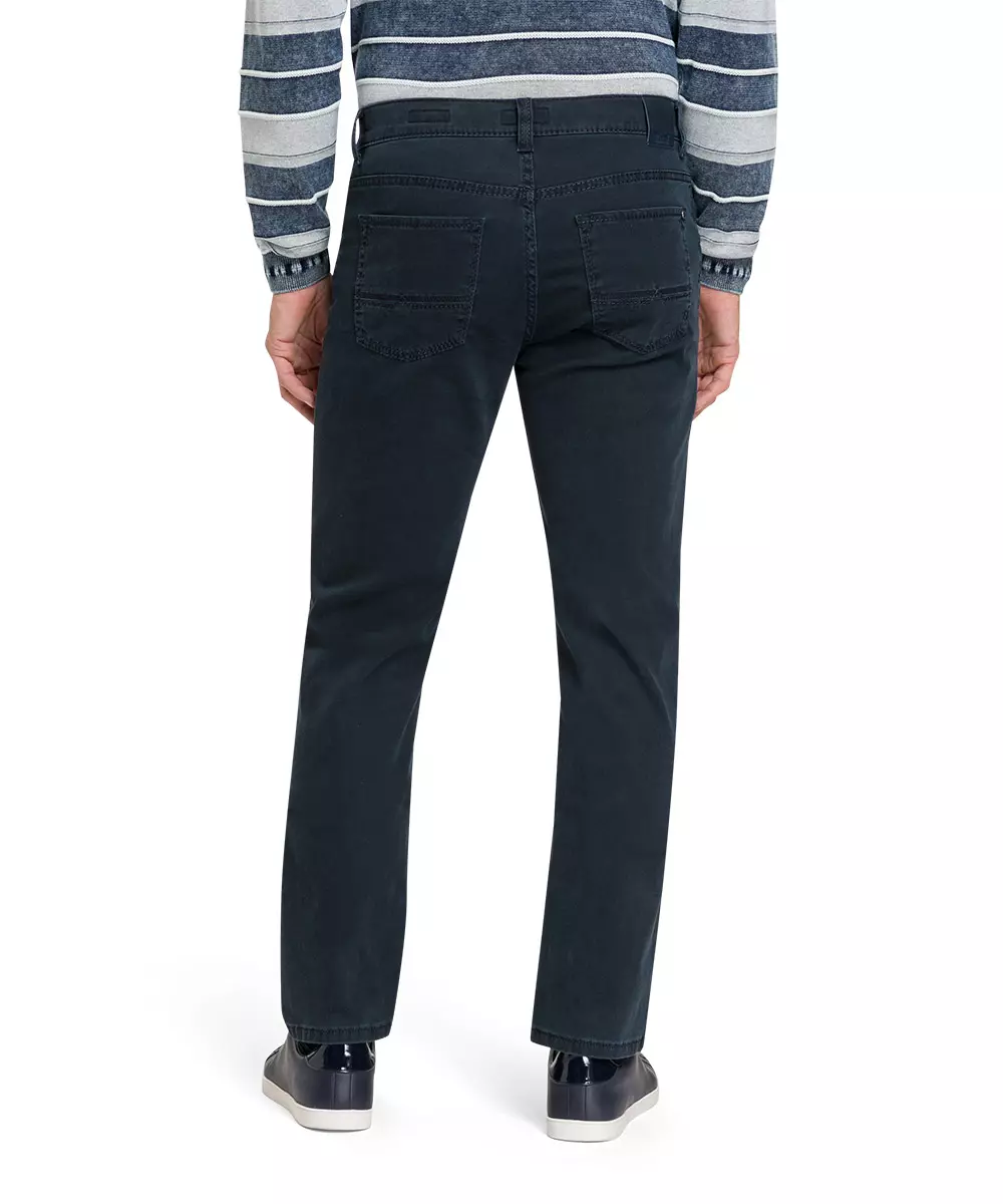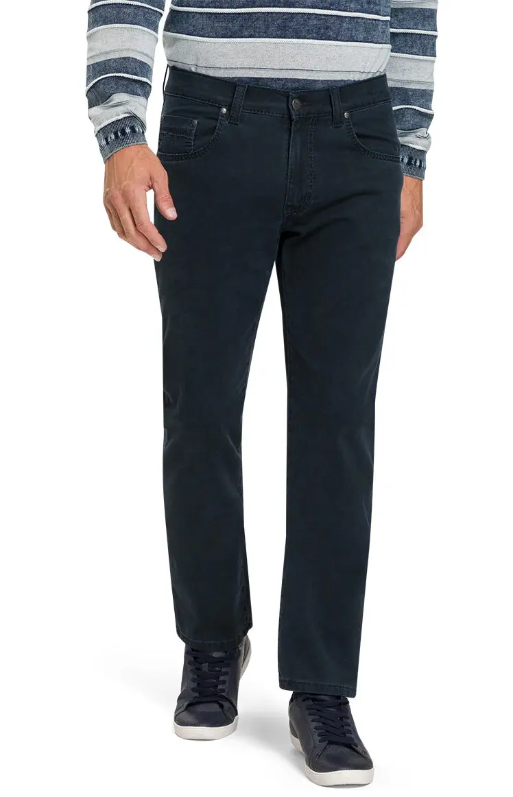 Pioneer 40inch beenlengte 5 pocket stretch jeans mega flex donkerblauw met ingeweven structuurtje in model Rando. De kwaliteit is 98% katoen en 2% elastan.