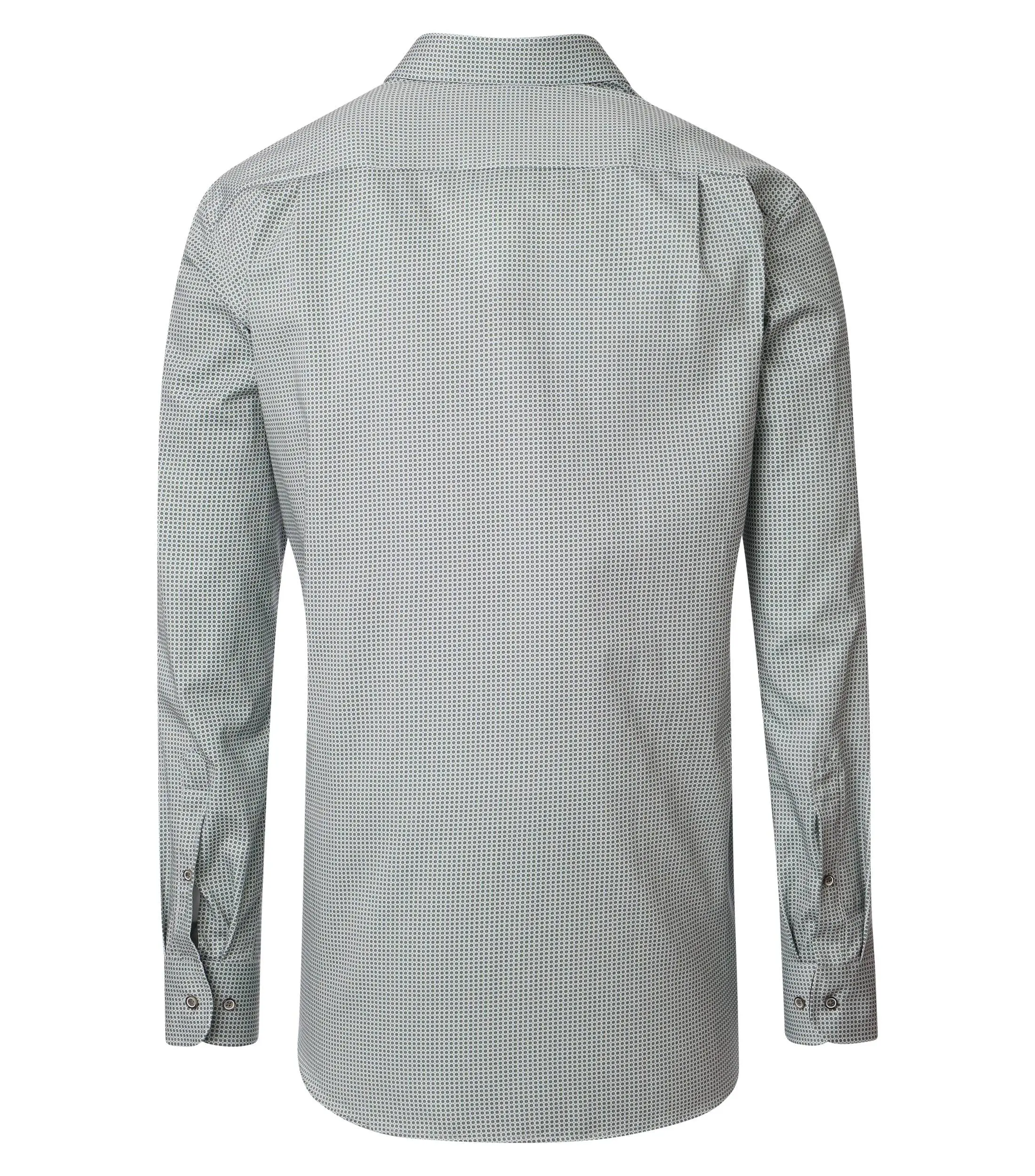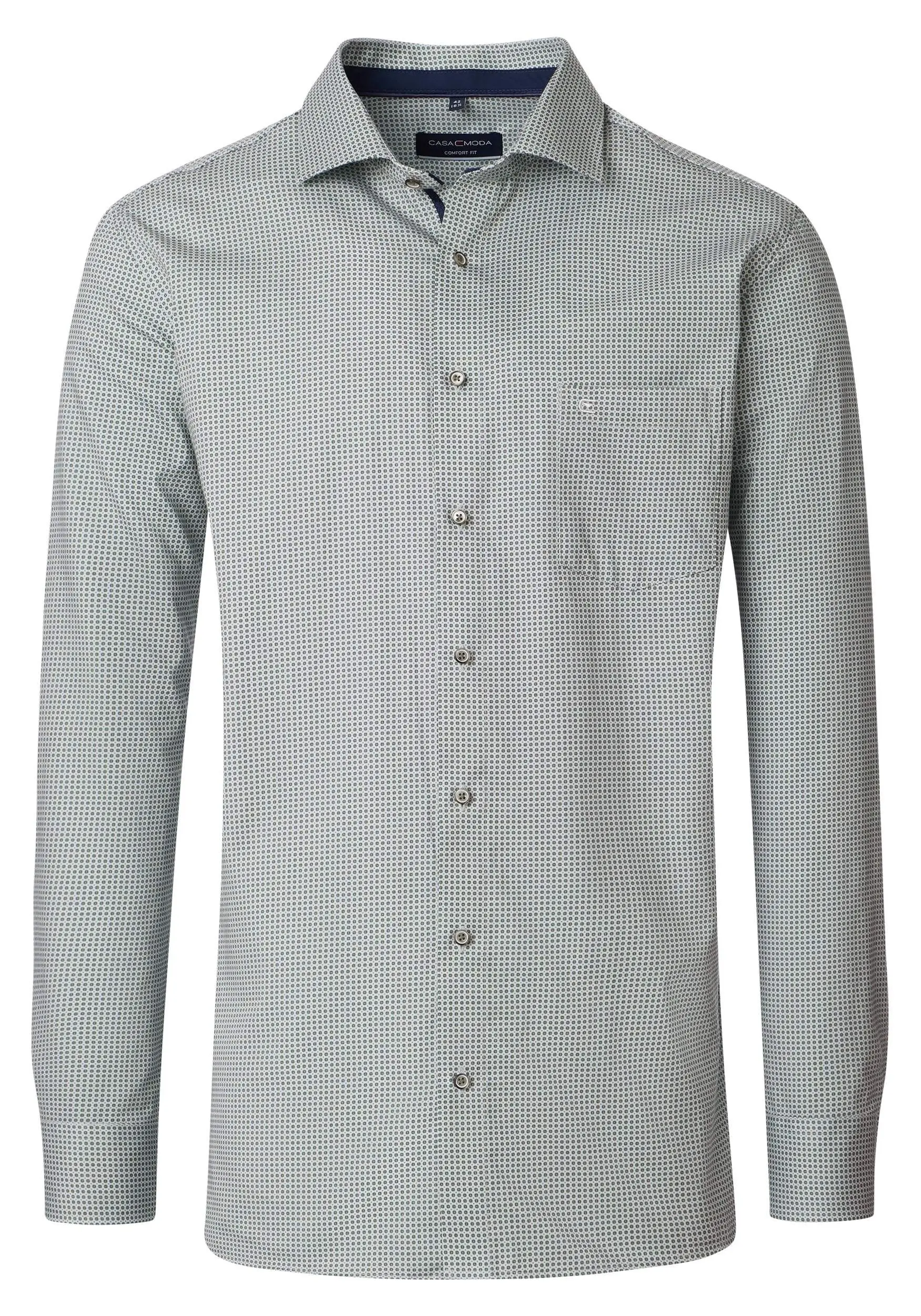 Casa Moda overhemd 72cm mouwlengte7 groen, wit en blauw fantasie design. Binnenkant kraag en manchetten zijn met een contrasterend stofje afgewerkt. Model comfort fit 100% katoen easy care.