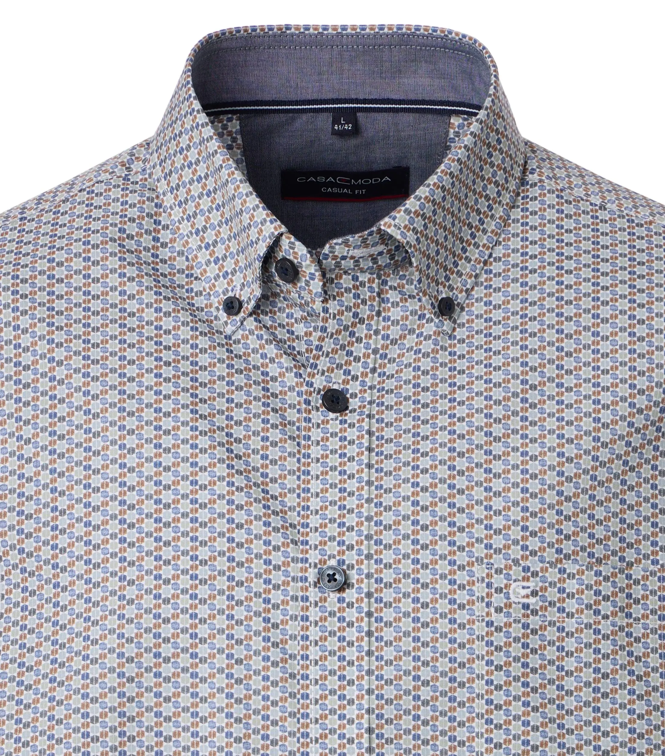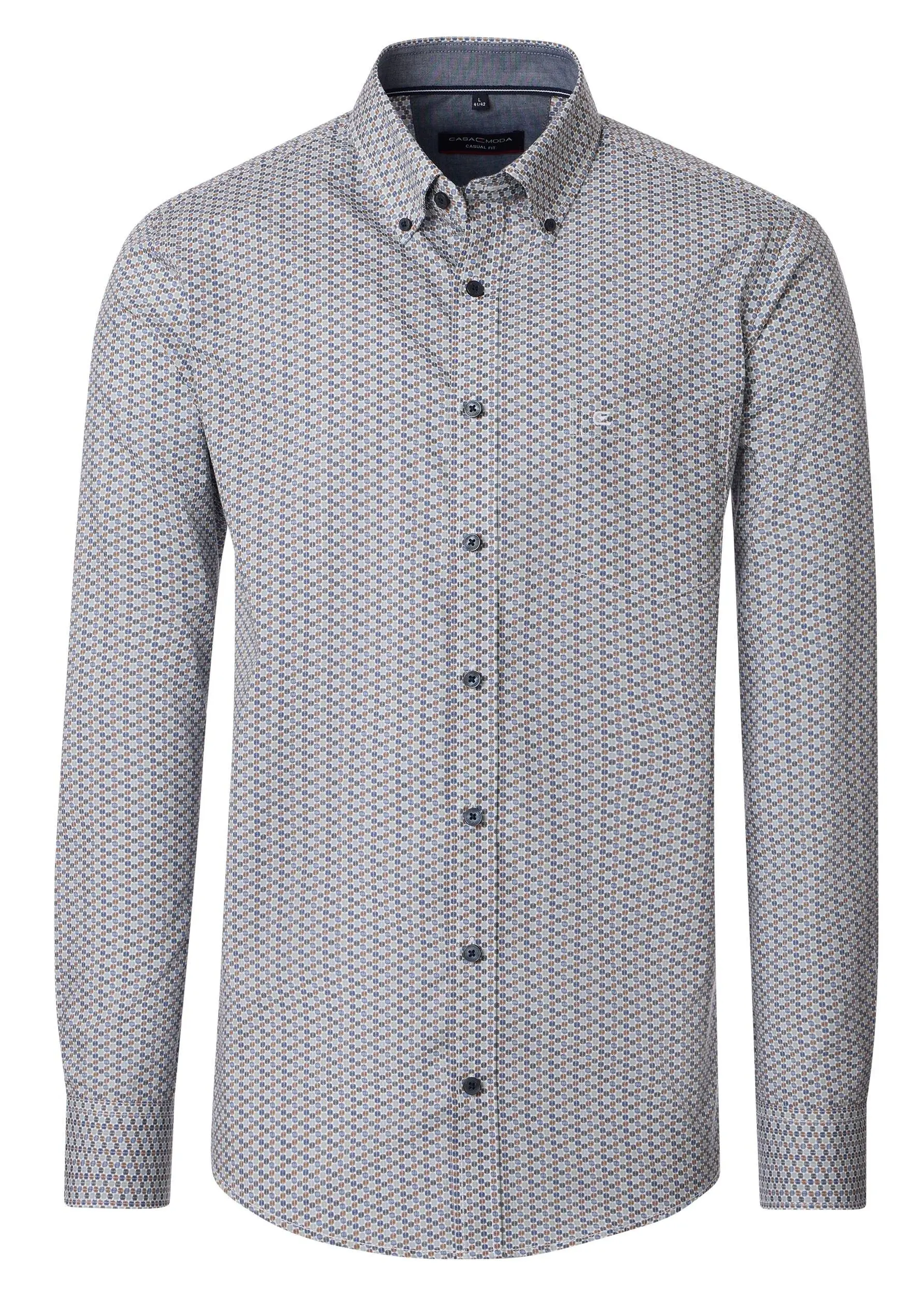 Casa Moda overhemd 72cm mouwlengte7 met borstzakje in een groen fantasie design. Binnenkant kraag en manchetten zijn met een contrasterend stofje afgewerkt. Model casual fit 100% katoen easy care.
