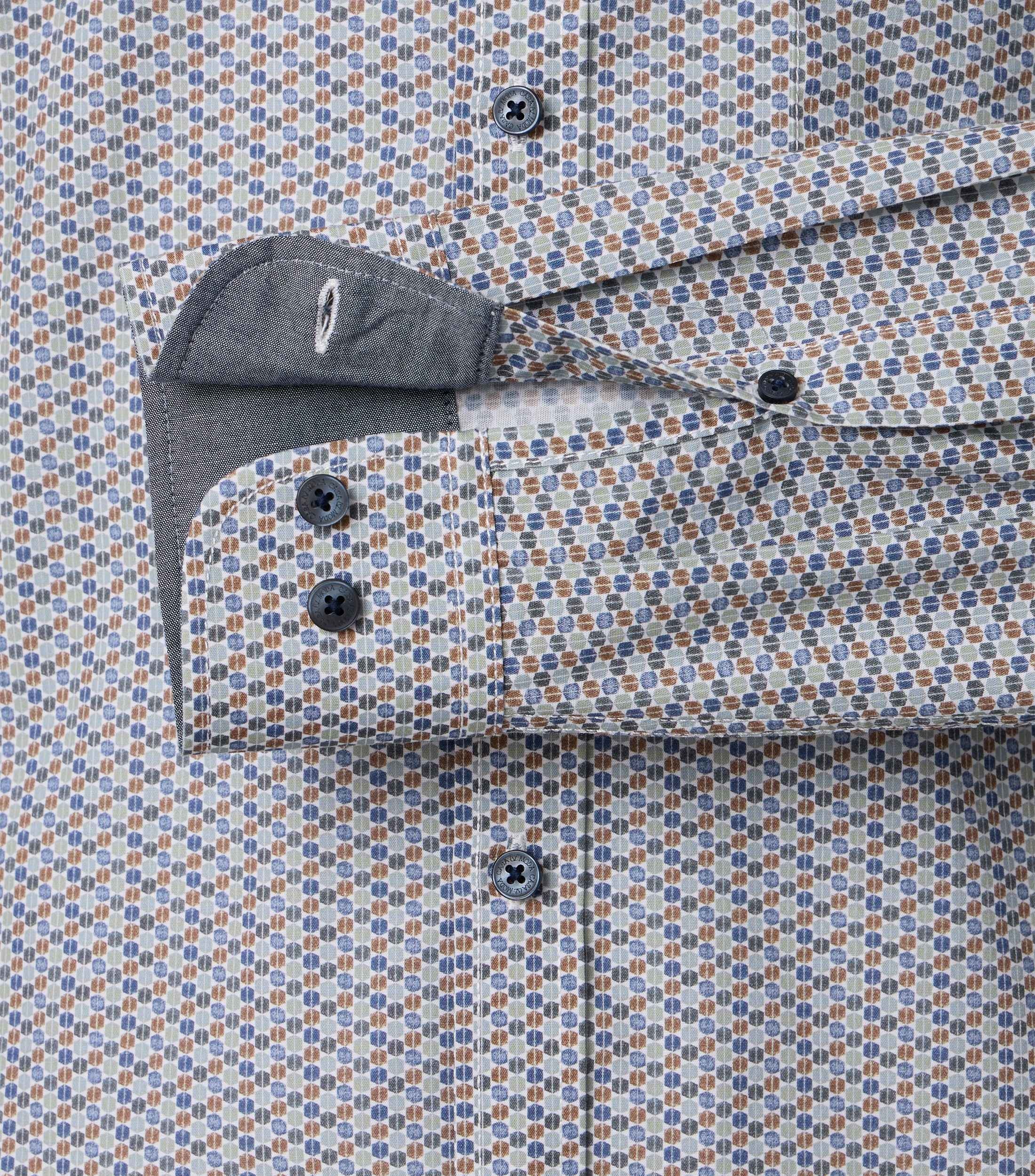 Casa Moda overhemd 72cm mouwlengte7 met borstzakje in een groen fantasie design. Binnenkant kraag en manchetten zijn met een contrasterend stofje afgewerkt. Model casual fit 100% katoen easy care.