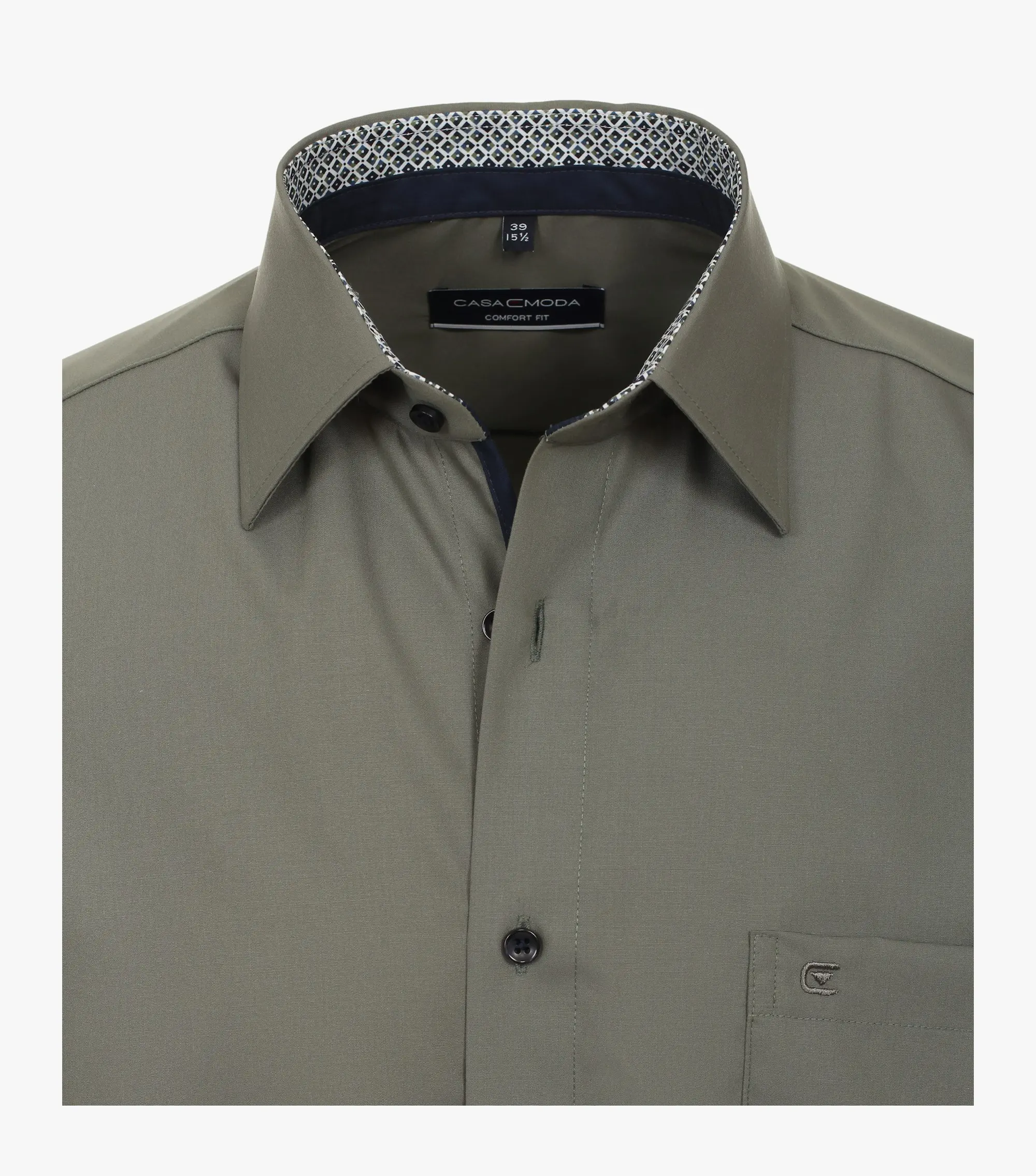 Casa Moda overhemd mouwlengte 7 groen. Mouwlengte7 overhemd met borstzakje model comfort fit 100% katoen strijkvrij.