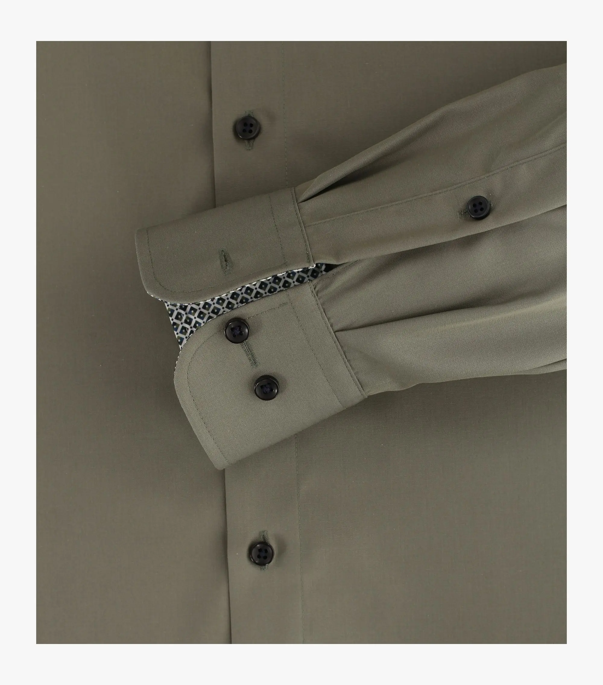 Casa Moda overhemd mouwlengte 7 met borstzakje in groen. model comfort fit 100% katoen strijkvrij.