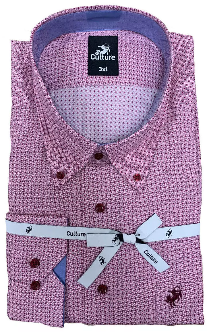 Culture overhemd met lange mouw met borstzak in een roze fantasie design met kraag button down. De kwaliteit van dit overhemd is 100% katoen.