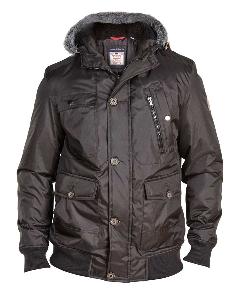 D555 grote maat winter jack met capuchon zwart. 4 buiten zakken een met rits en een binnenzak.
