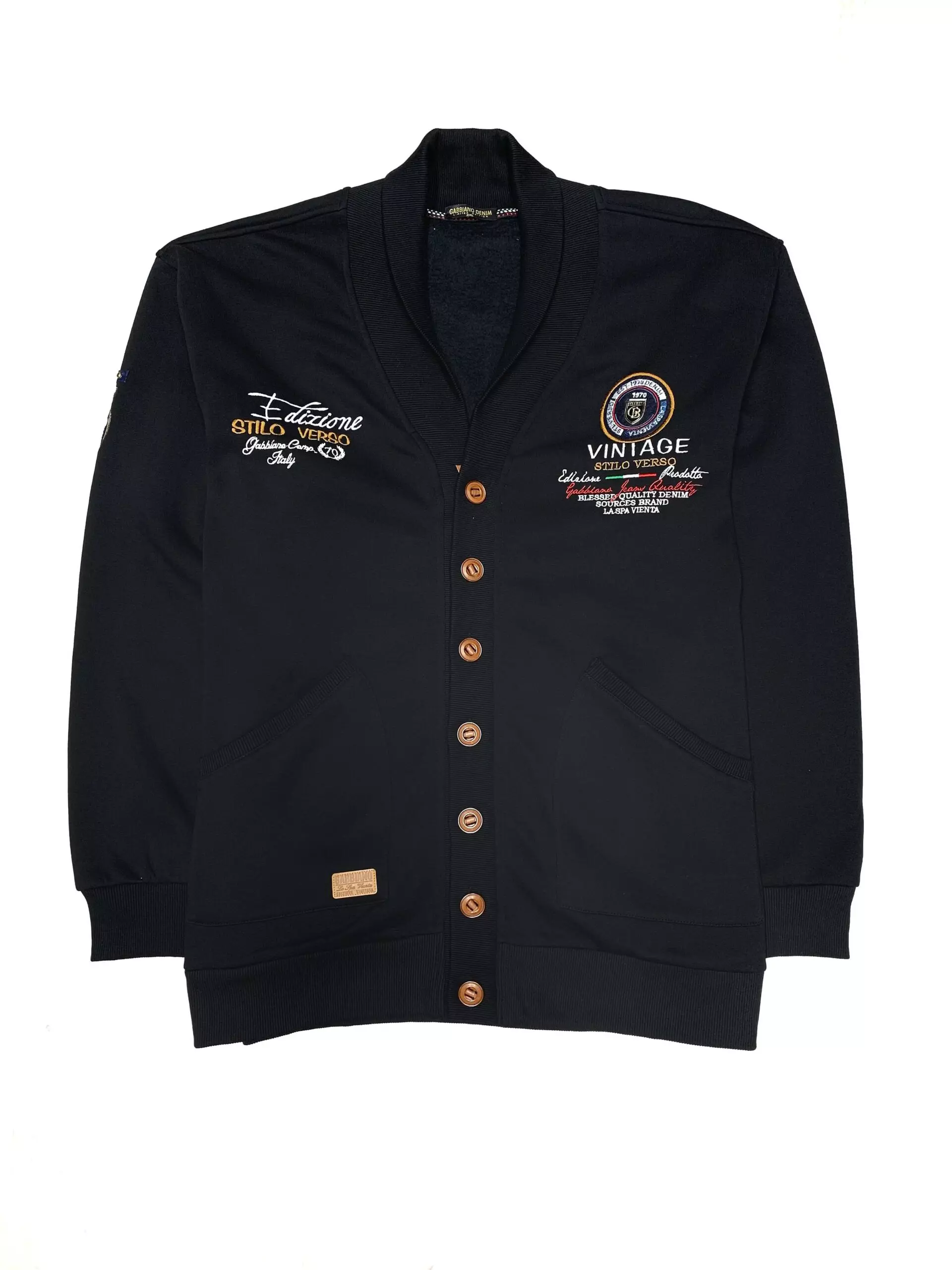 Gabbiano sjaal kraag vest in zwart met sportieve applicaties. Vest met twee zijzakken en knoopsluiting in 84%katoen en 16%polyester.