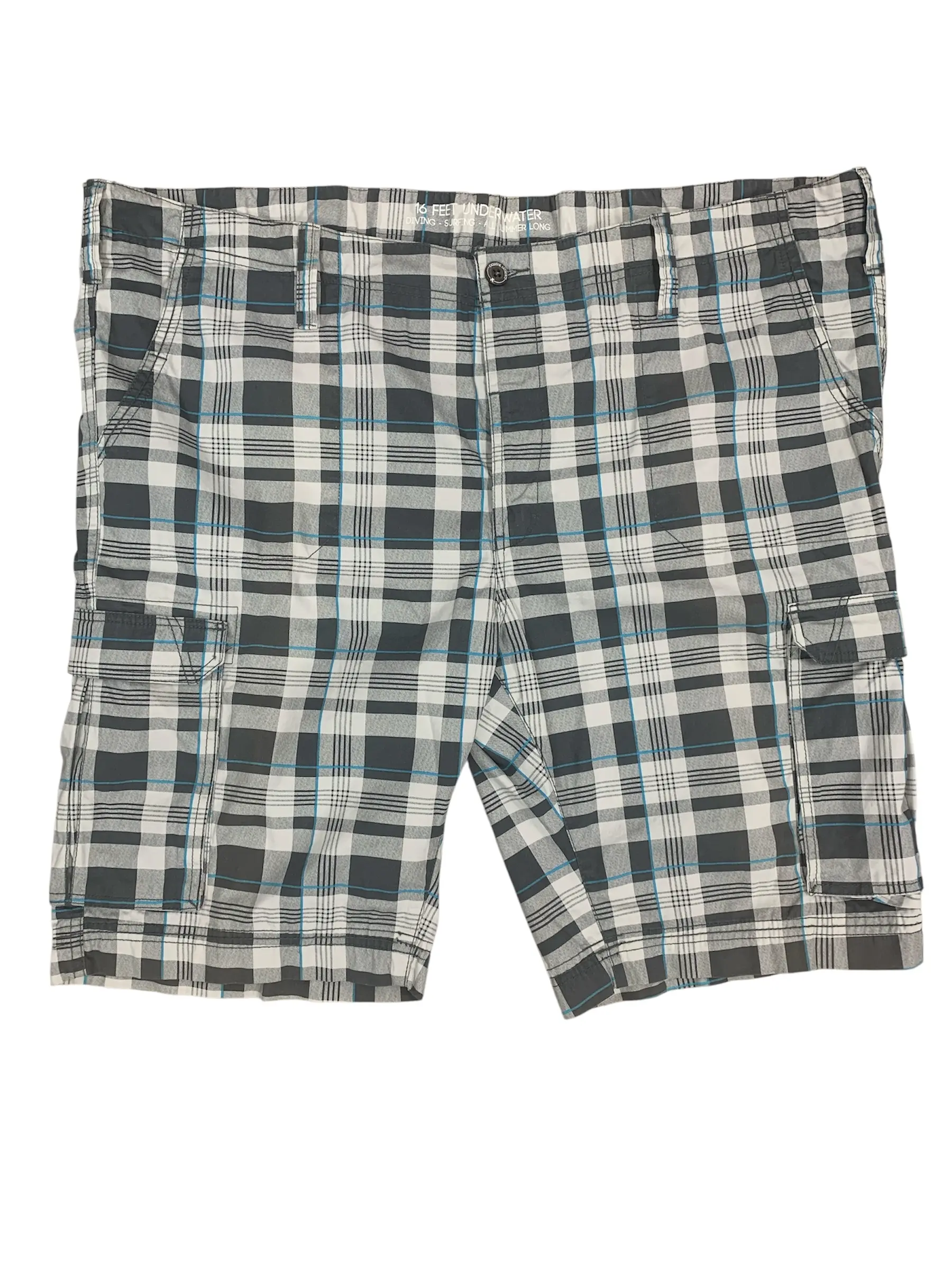 Het Broekenpaleis korte broek grijs, wit en blauwe ruit. Sportieve bermuda met twee achter klep zakken met knoop, voor en zijzakken. De kwaliteit is 100% katoen.