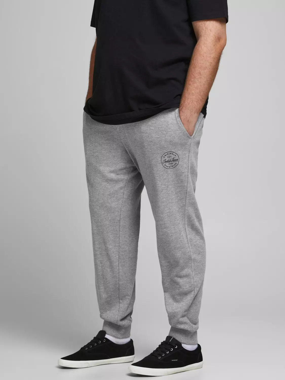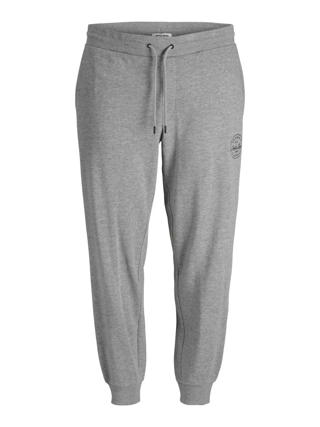 Jack & Jones joggingbroek in lichtgrijs met 2 zijzakken en een achterzak met in de elastische band een koord om de broek strakker aan te trekken. Joggingbroek heeft aan de onderkant van de pijp een manchet en op het linker bovenbeen een Jack & Jones logo. De kwaliteit is 85%katoen en 15%viscose.