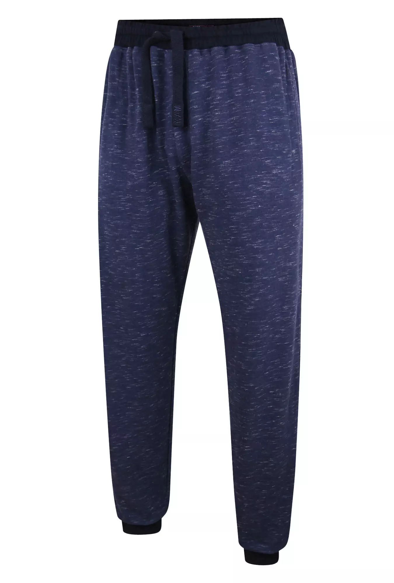 Kam joggingbroek met boord blauw gemêleerd. Super kwaliteit joggingbroek met boord en zijzakken met rits, achterzak met klittenband sluiting. Joggingbroek met koortje in de band om de broek strakker aan te trekken in 65%katoen en 35%polyester.