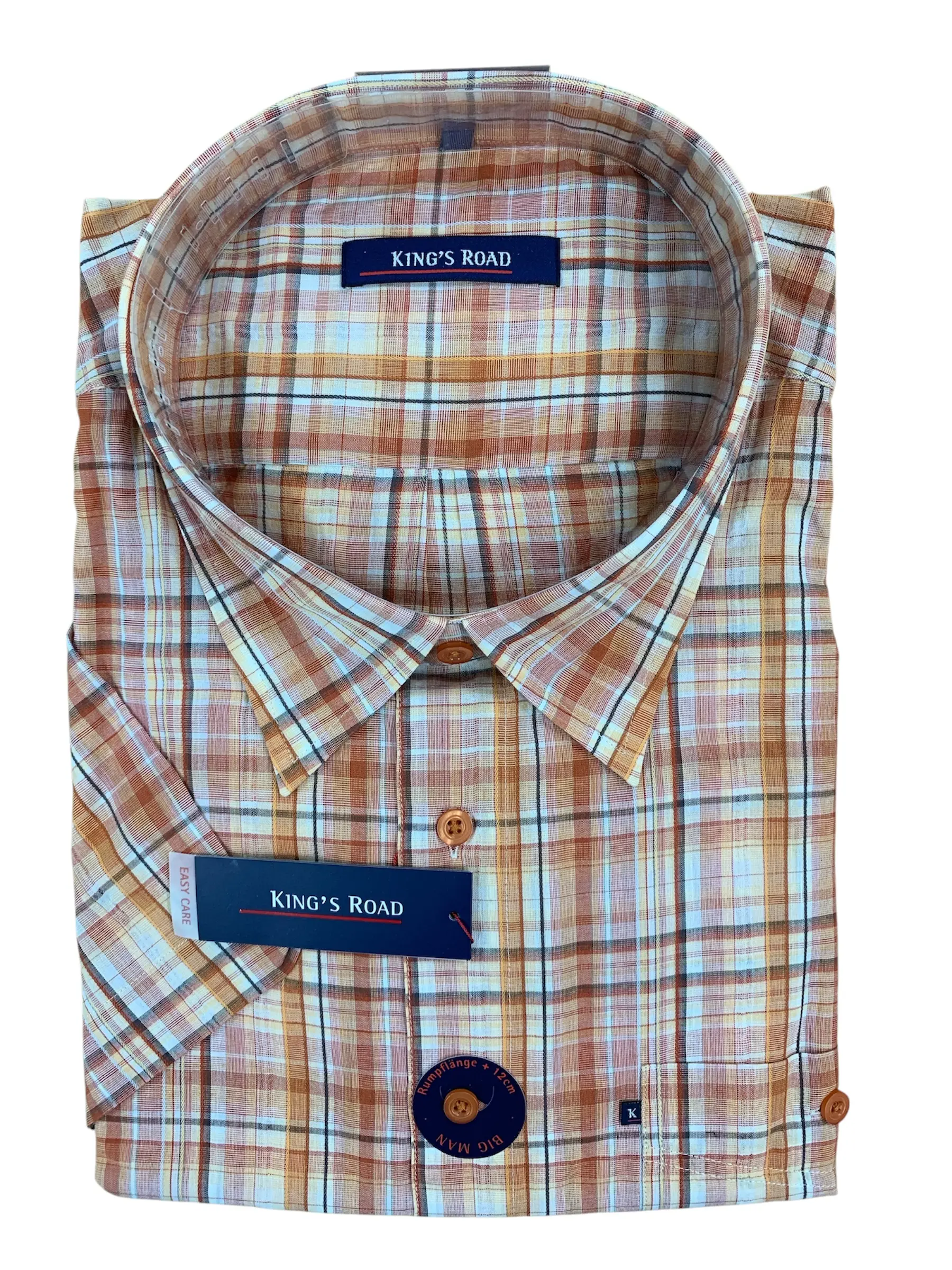 King’s Road overhemd korte mouw oranje ruit 5XL. Overhemd met korte mouwen en borstzakje. De kwaliteit is van 72% katoen en 28% nylon.