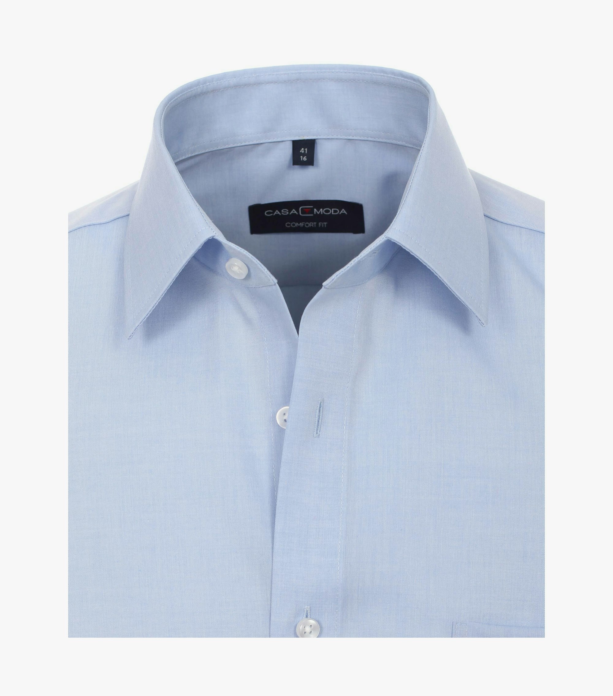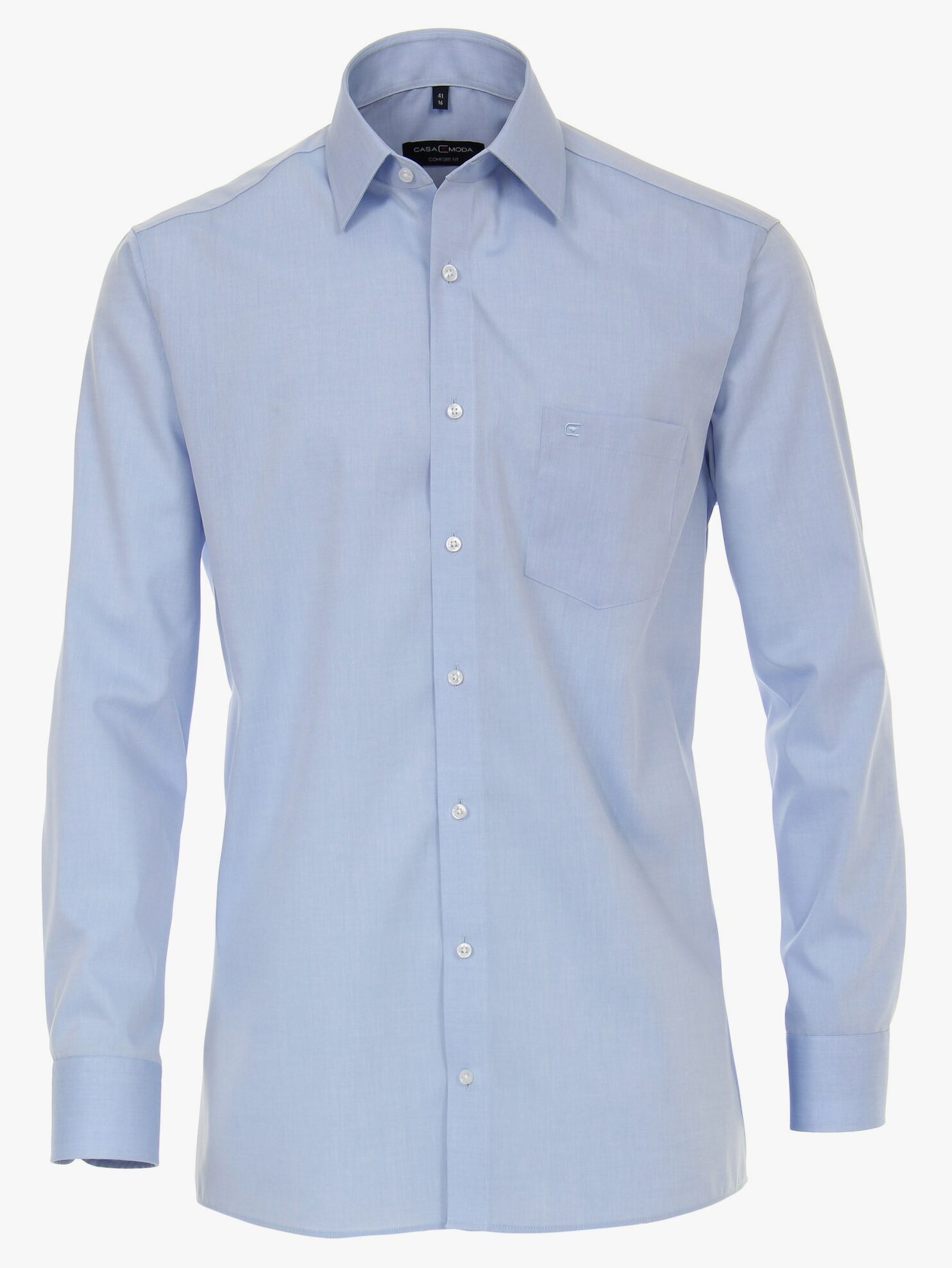 Casa Moda lange mouw overhemd blauw strijkvrij. Casa Moda overhemd lange mouw met borstzakje in uni blauw. Model comfort fit in 100% katoen strijkvrij.